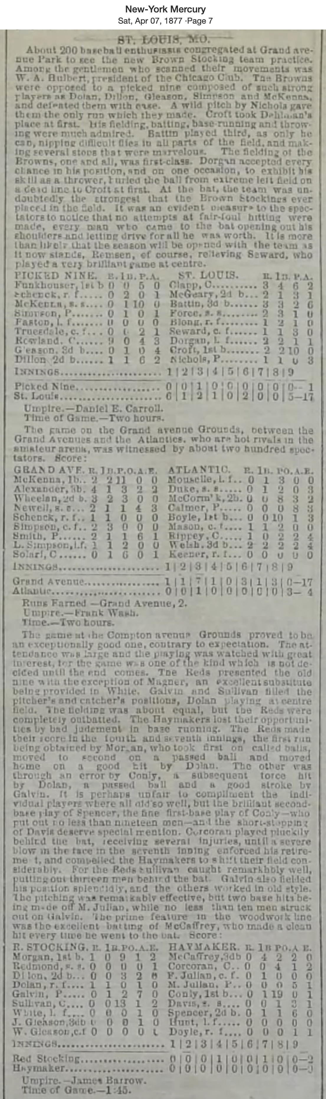LineupDan Morgan (1b)Billy Redmond (ss)Packy Dillon (2b)Tom Dolan (rf)Jim Galvin (p)Tom Sullivan (c) White (lf)Jack Gleason (3b)Bill Gleason (cf)