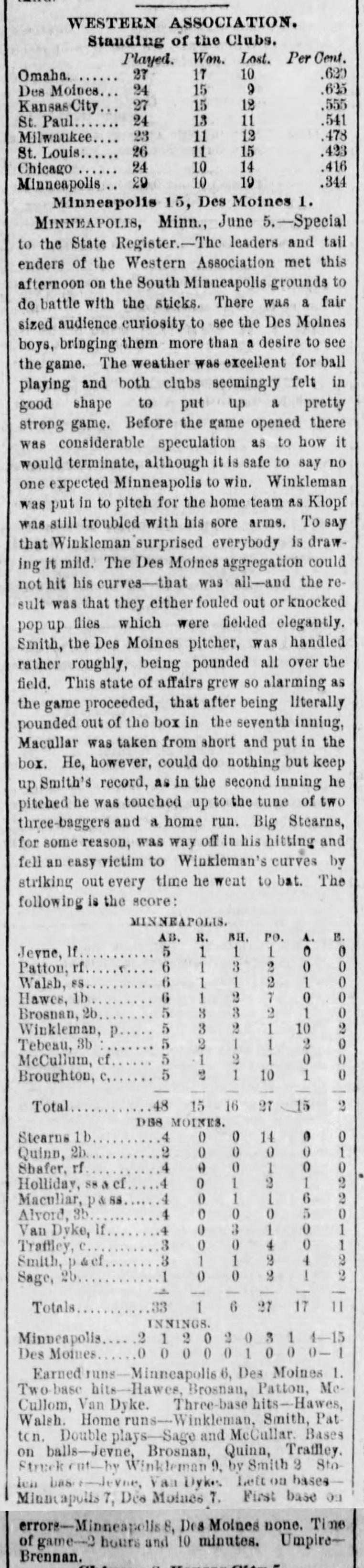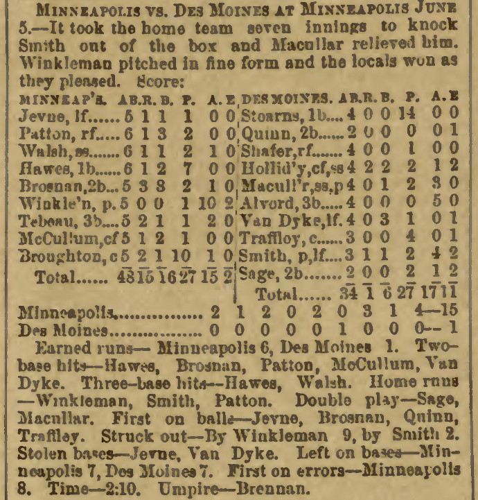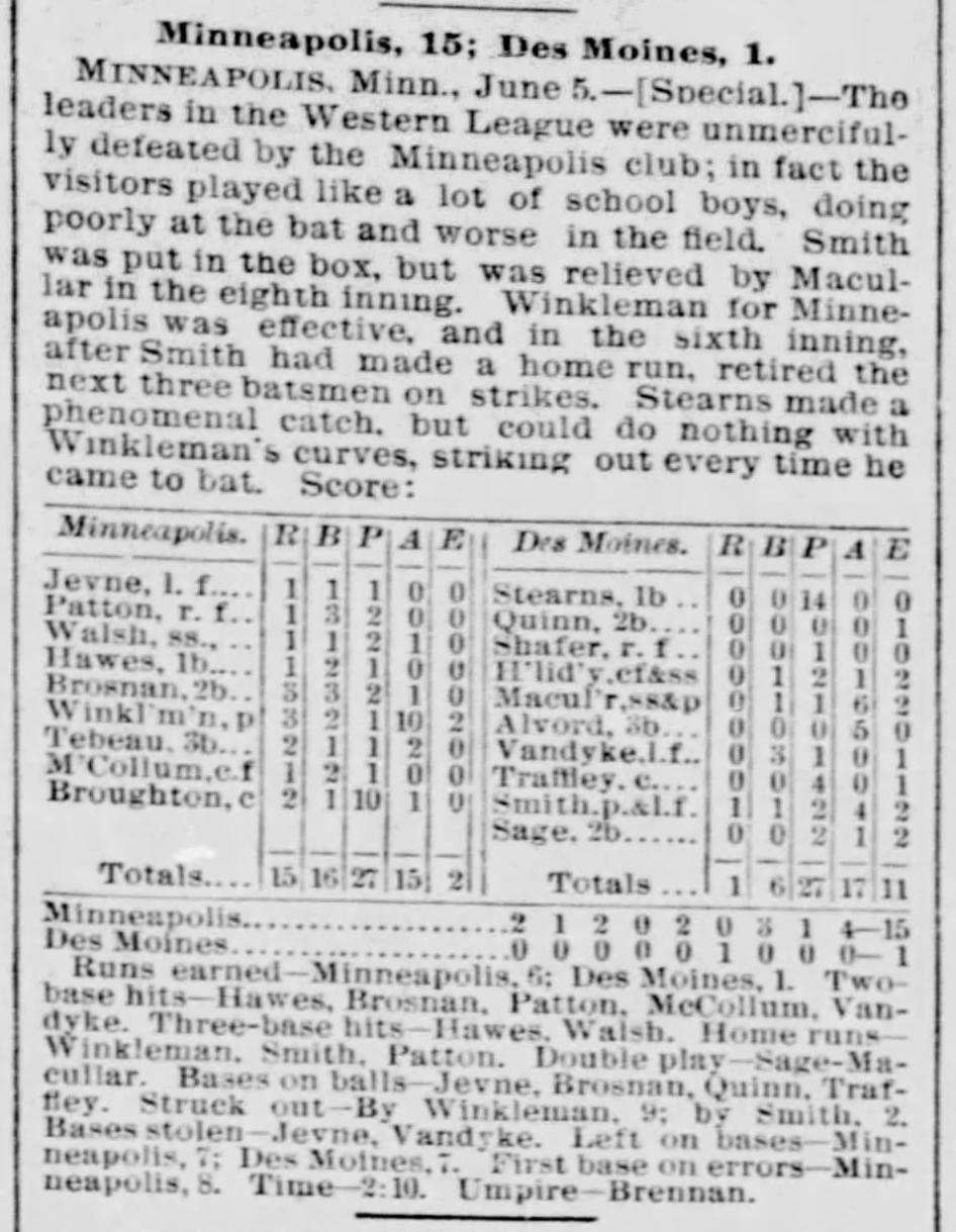Minneapolis 15, Des Moines 1 |