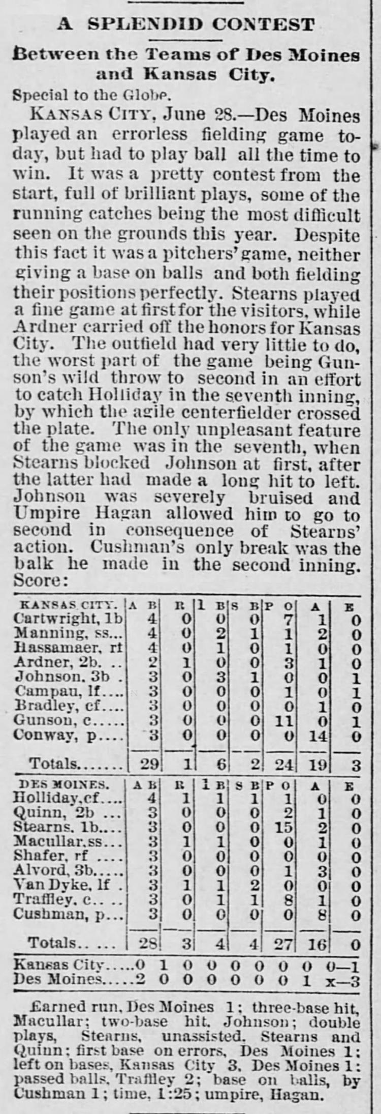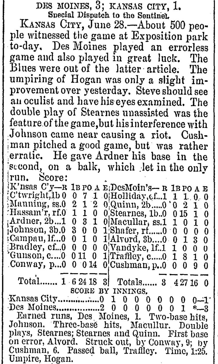Des Moines 3, Kansas City 1 |