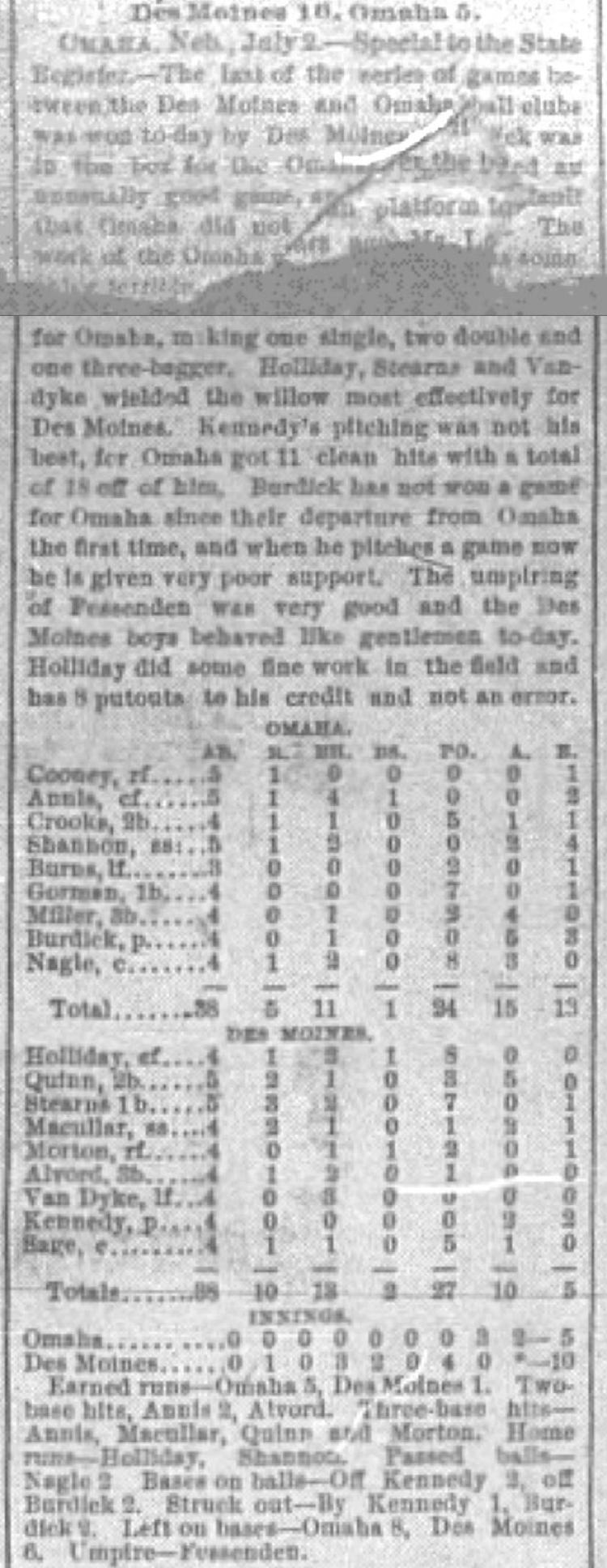 Des Moines 10, Omaha 5 |