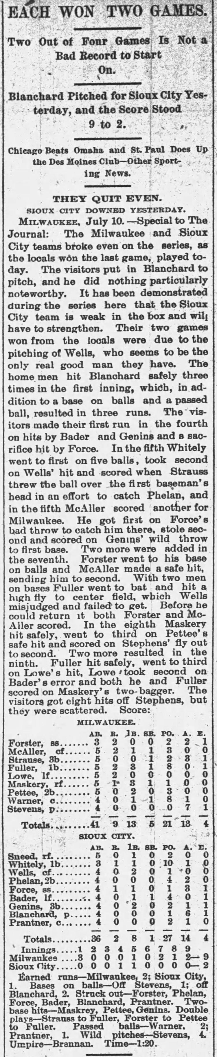 Milwaukee 9, Sioux City 2 |