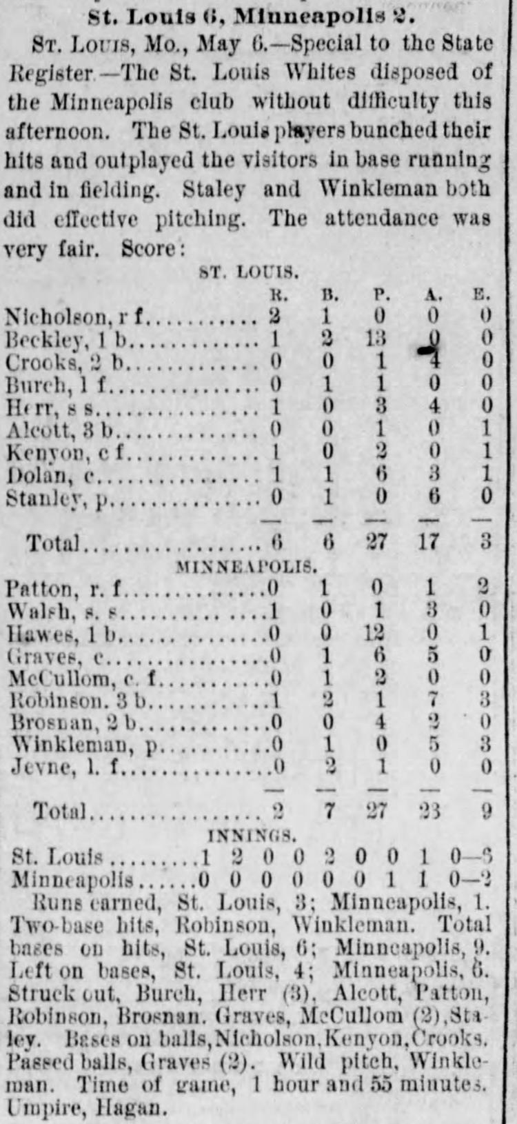 St. Louis 6, Minneapolis 2 |
