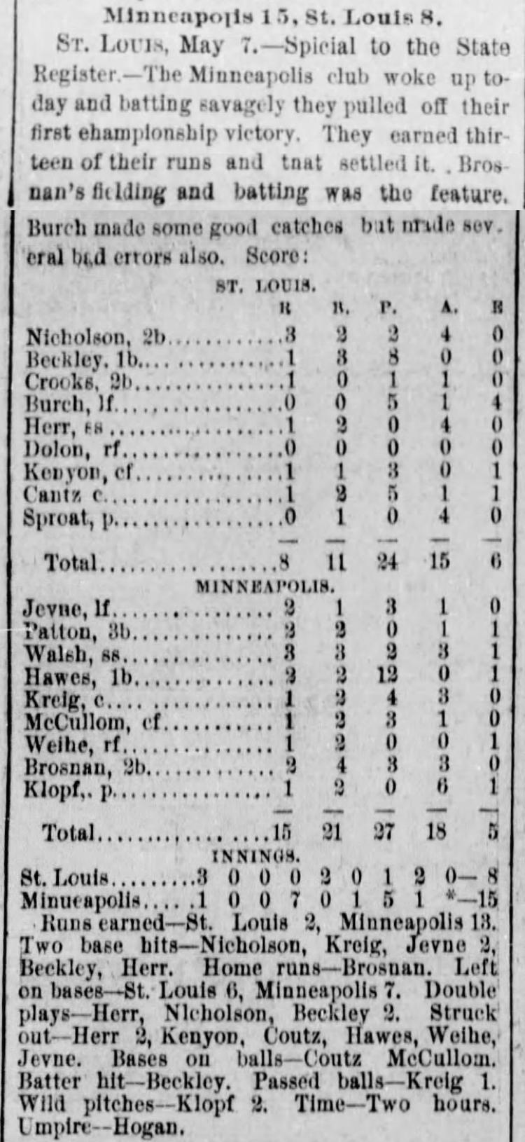 Minneapolis 15, St. Louis 8 |