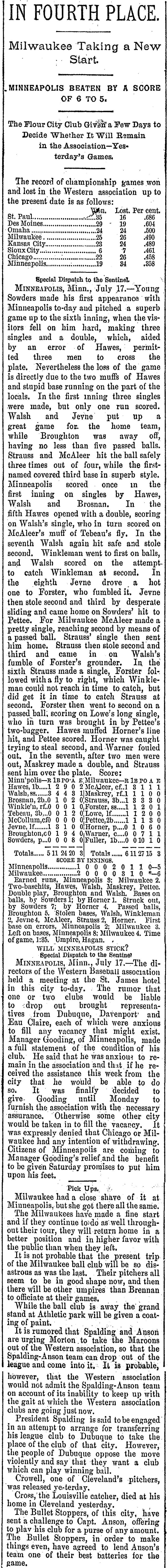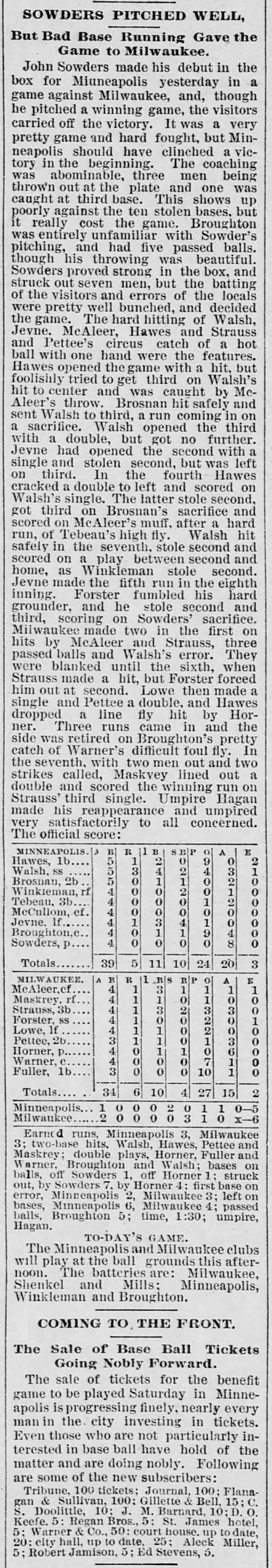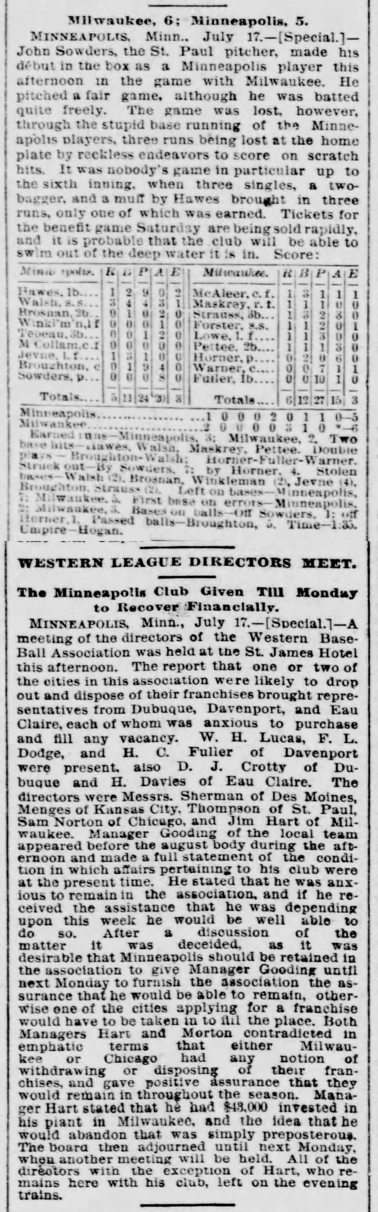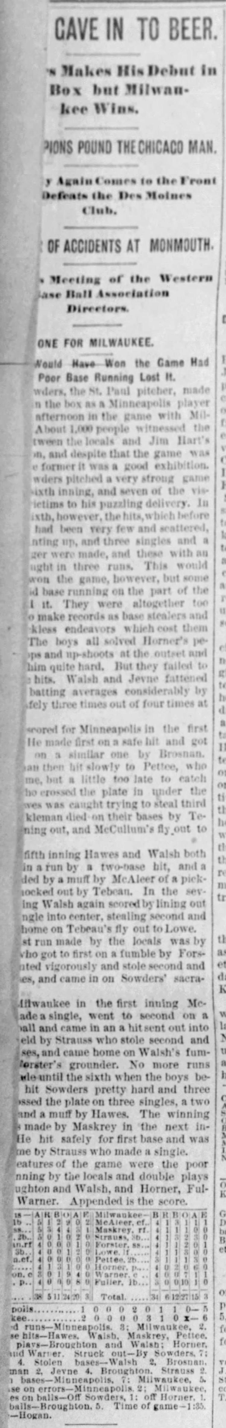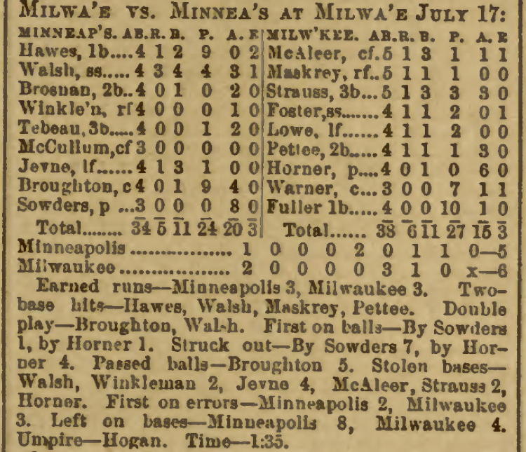 Milwaukee 6, Minneapolis 5 |