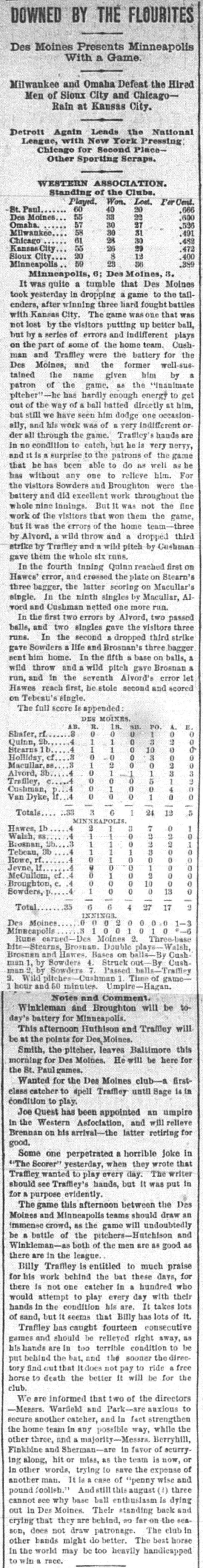 Minneapolis 6, Des Moines 3 |