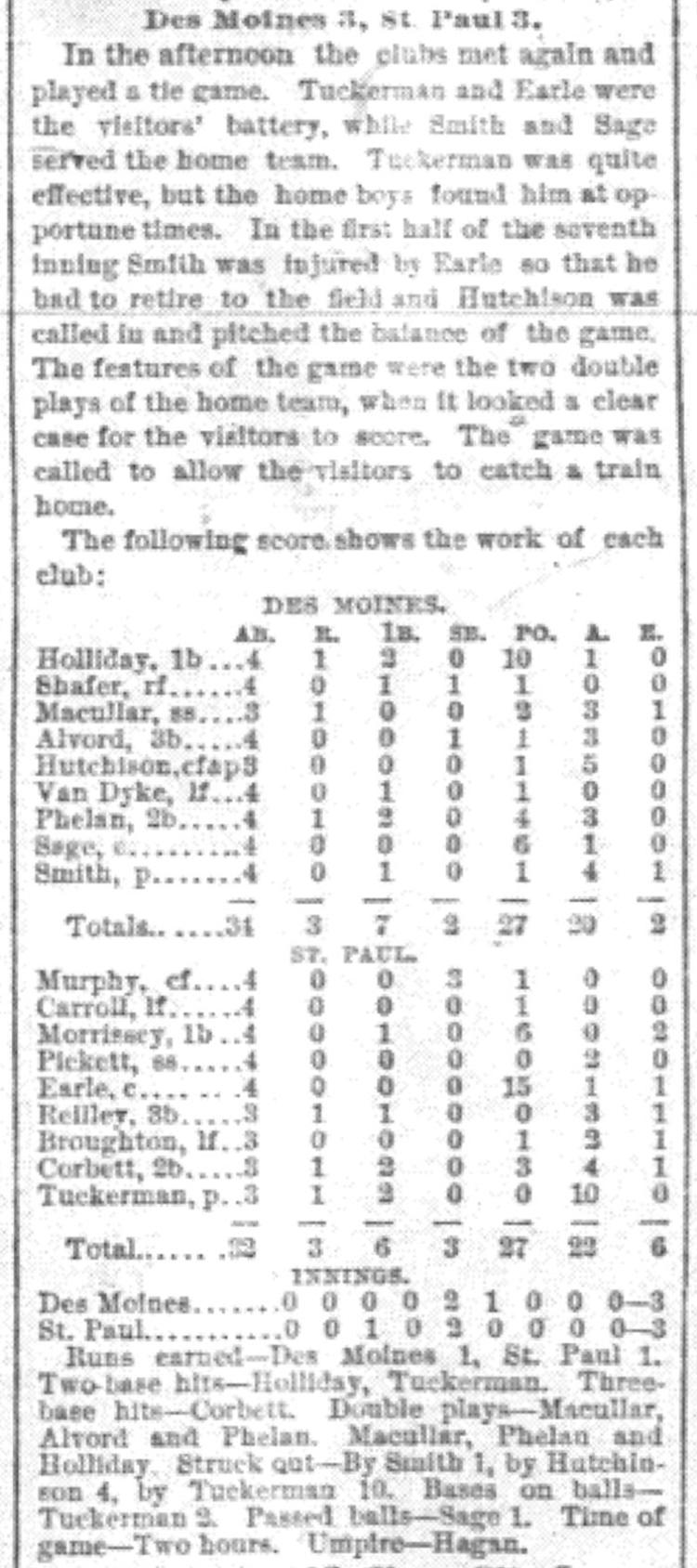 Des Moines 3, St. Paul 3 |