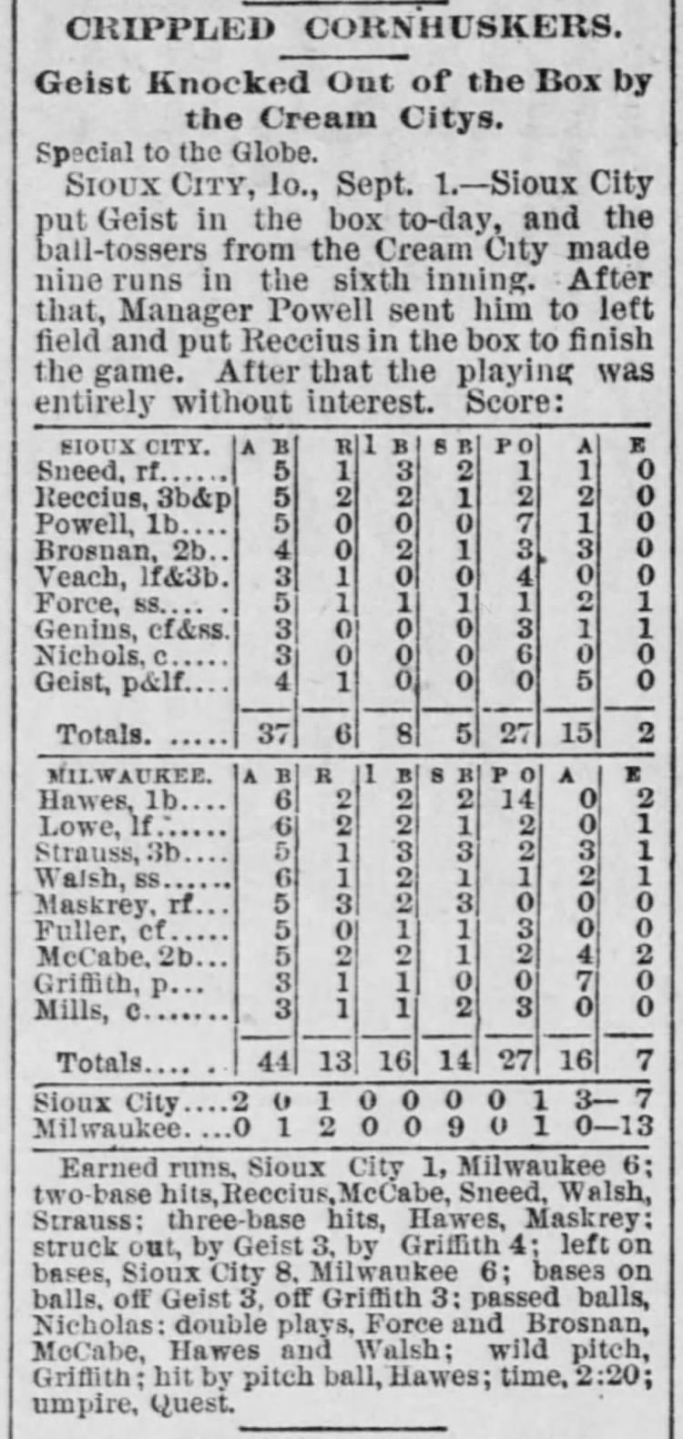 Milwaukee 13, Sioux City 7 |
