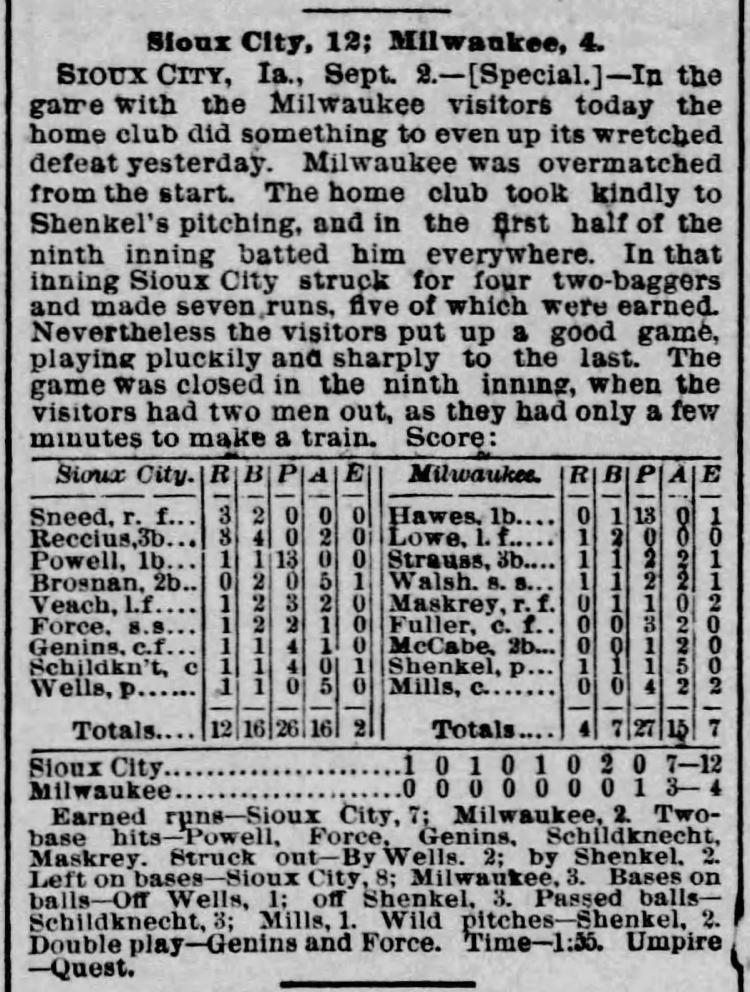 Sioux City 12, Milwaukee 4 |
