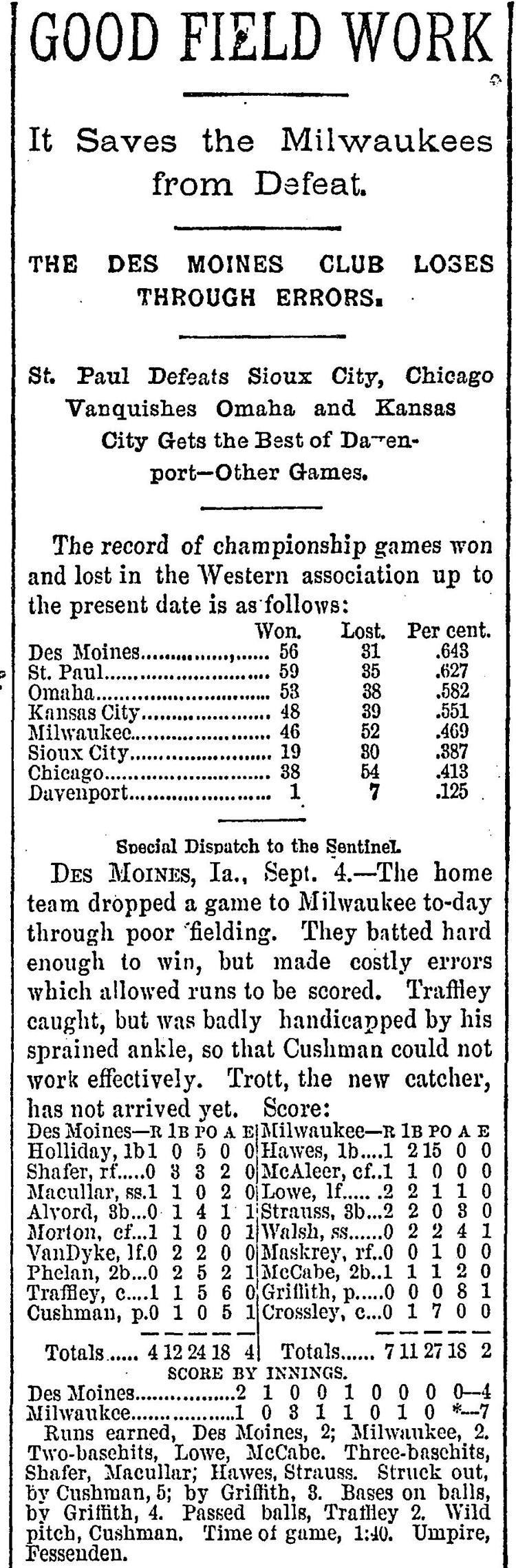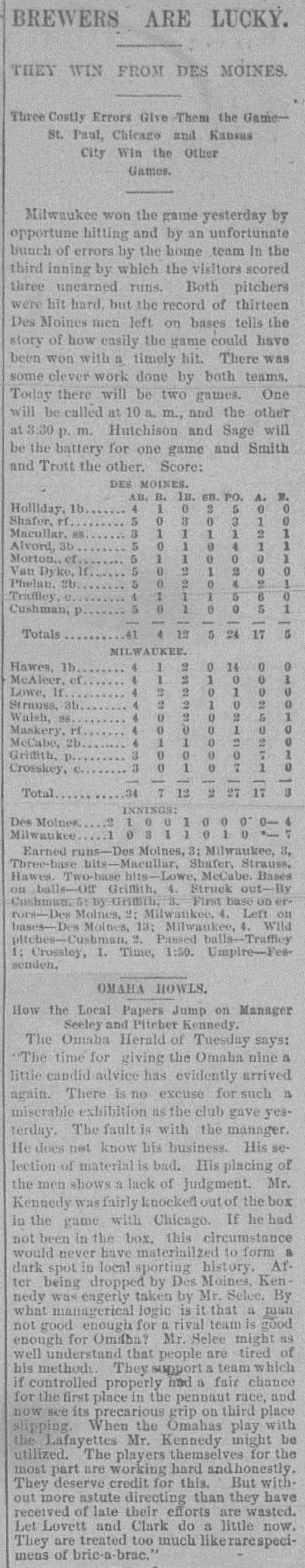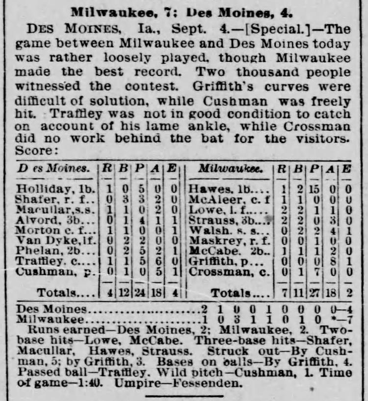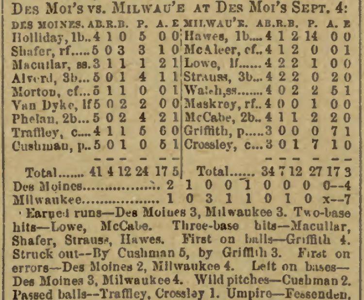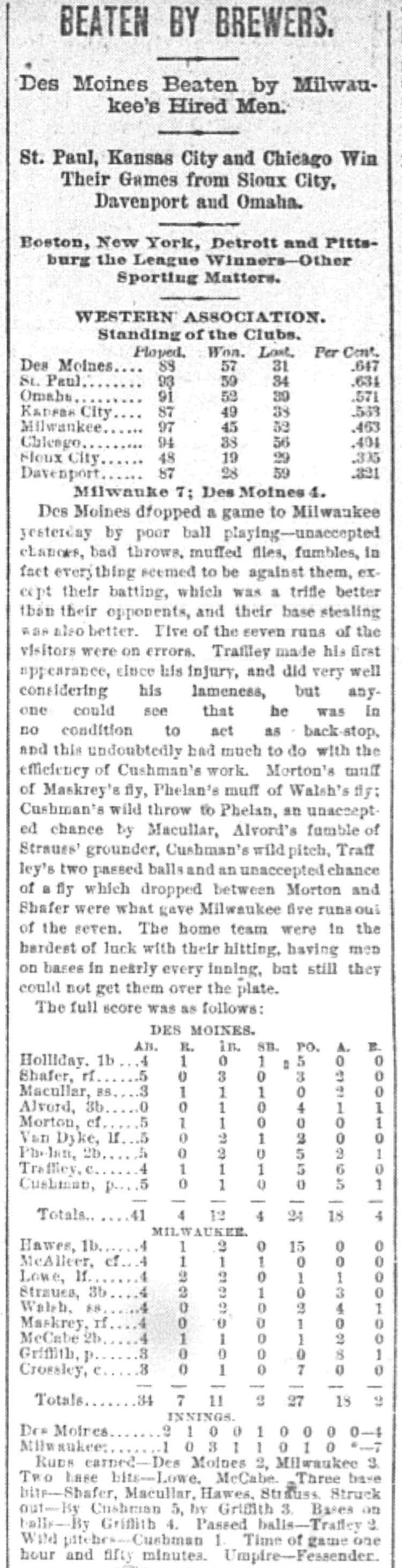 Milwaukee 7, Des Moines 4 |