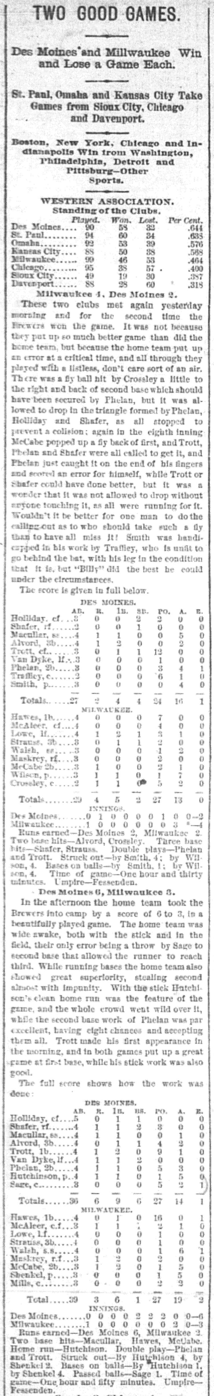 Milwaukee 4, Des Moines 2 |