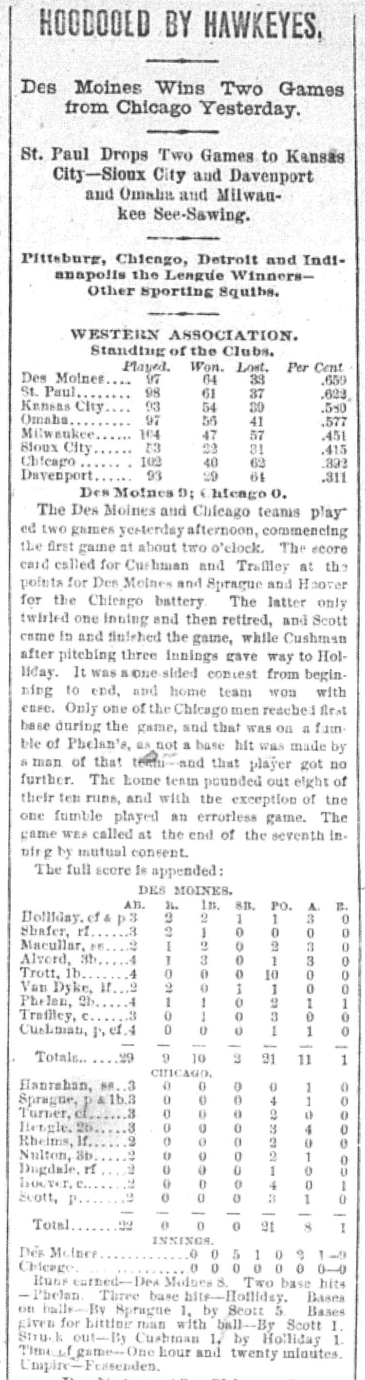 Des Moines 9, Chicago 0 |