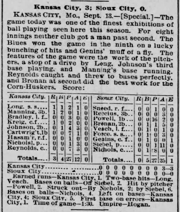 Kansas City 3, Sioux City 0 |