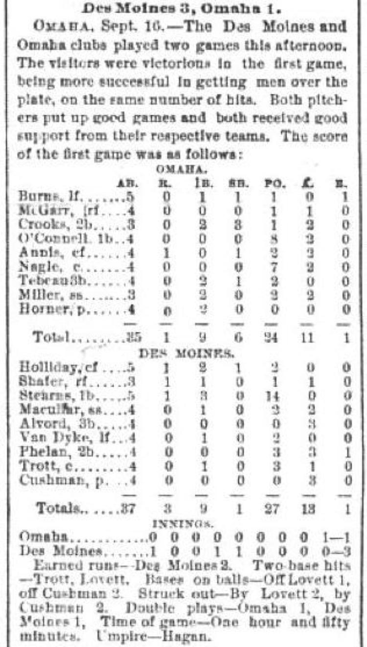 Des Moines 3, Omaha 1 |