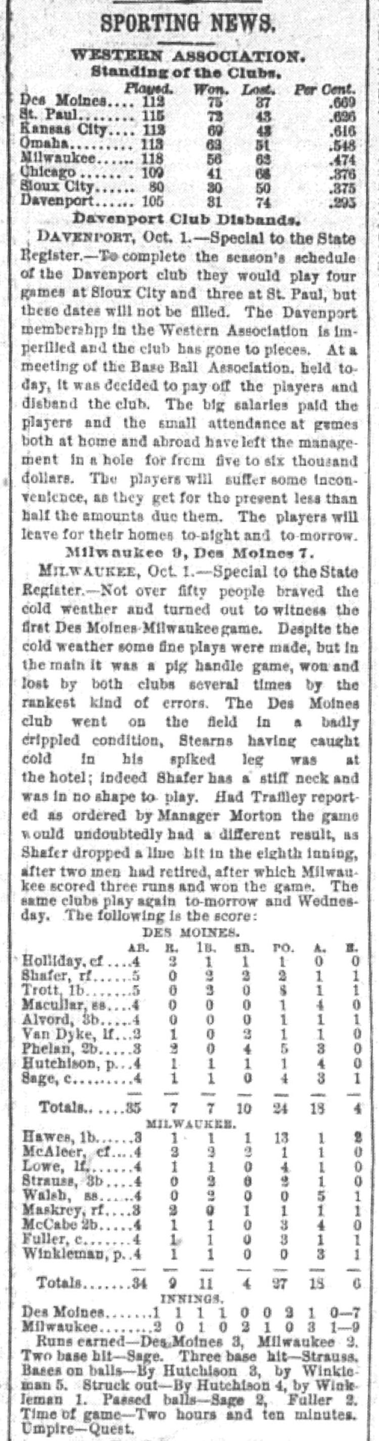 Milwaukee 9, Des Moines 7 |