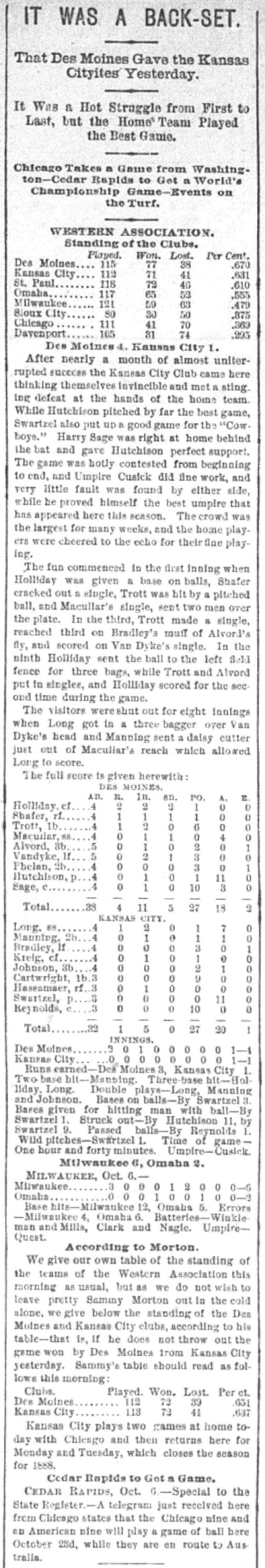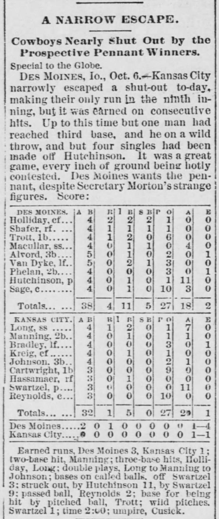 Des Moines 4, Kansas City 1 |