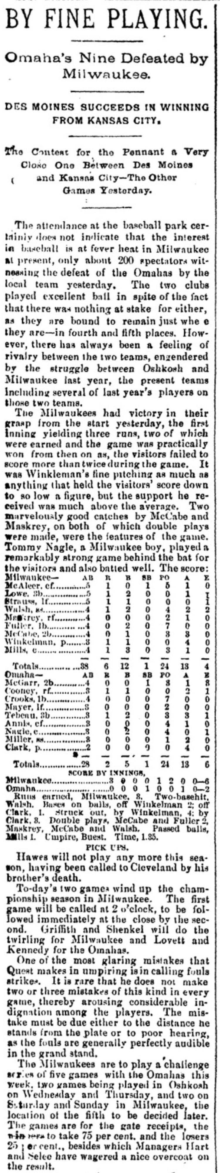 Milwaukee 6, Omaha 2 |