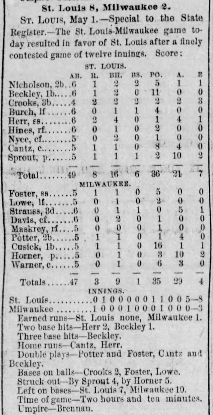 Lowe singled to right, Foster scoring when Hines handled the ball slowly