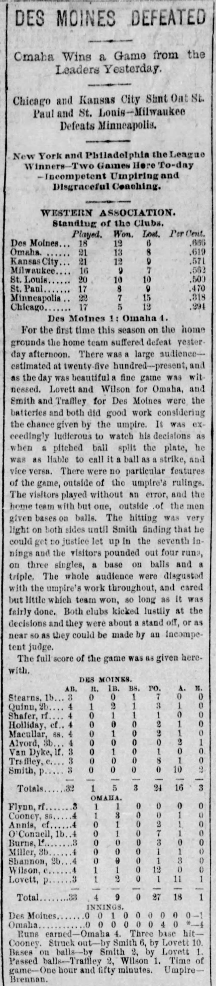 Omaha 4, Des Moines 1 |