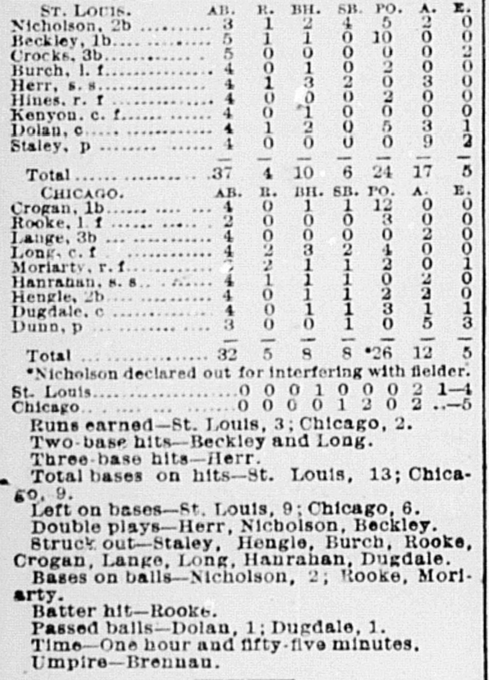![]() Standings at start of day | Results for May 2, 1888 Game 7: Des Moines 10, Minneapolis 0 Game 8: Kansas City 18, Milwaukee 2 Game 9: Omaha 2, St. Paul 1 Game 10: Chicago 5, St. Louis 4 | Standings at end of dayTeam Games Wins Losses Ties Pct. |