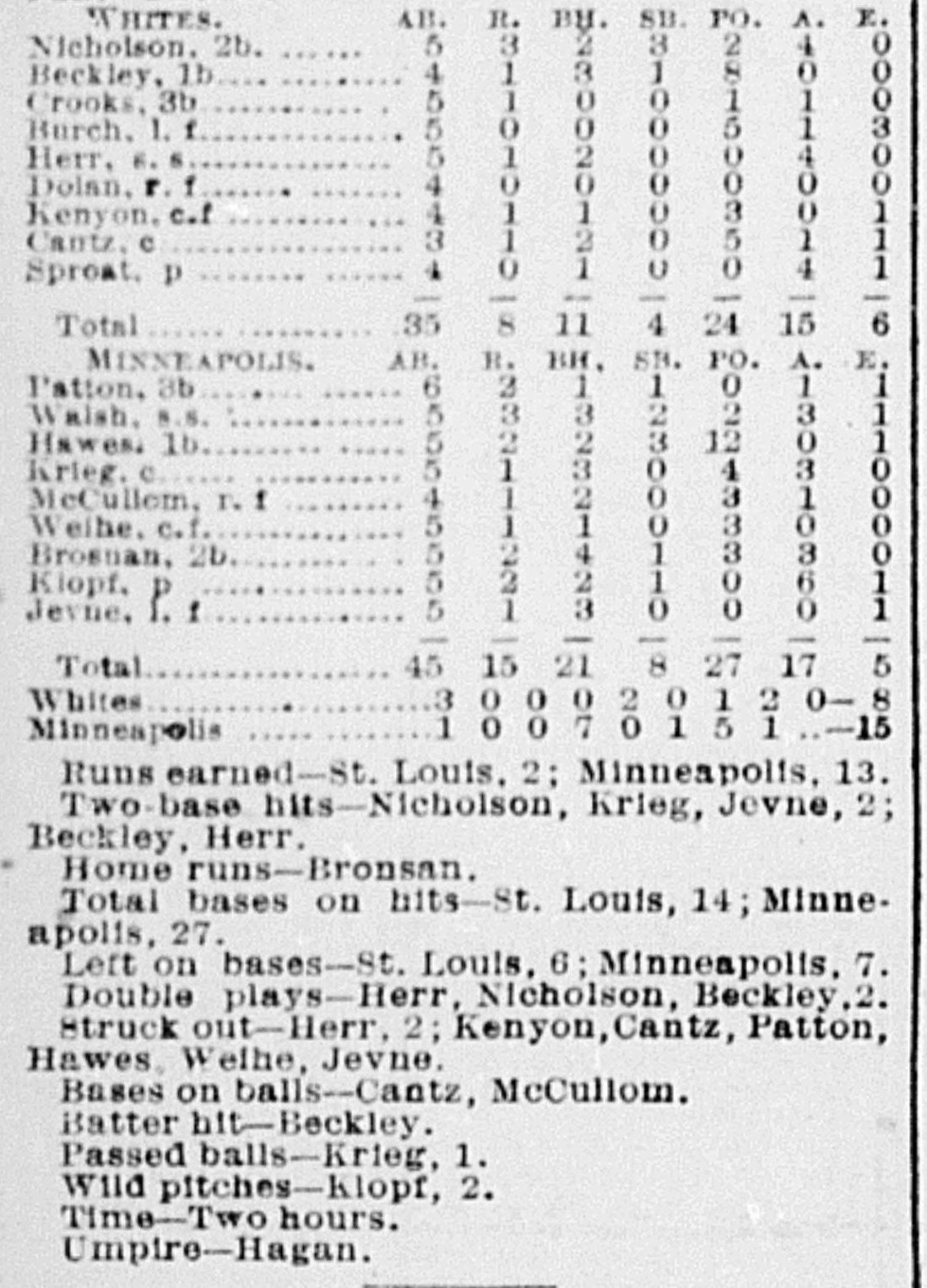 | Game 21: Minneapolis @ St. Louis Minneapolis 15, St. Louis 8 St. Louis Republican ![]() |