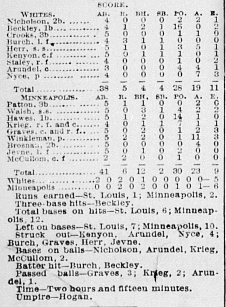 | Game 22: Minneapolis @ St. Louis Minneapolis 6, St. Louis 5 St. Louis Republican ![]() |