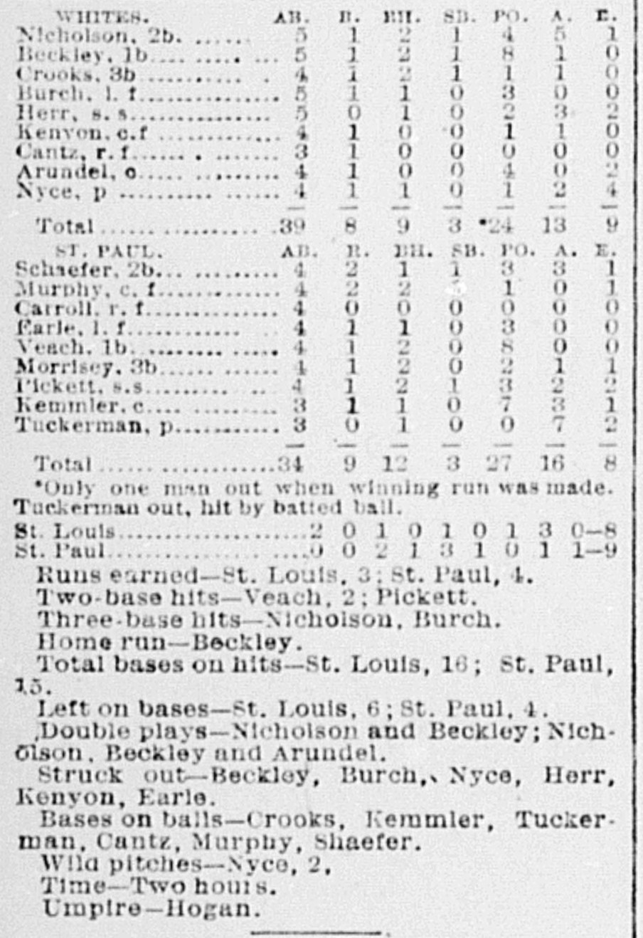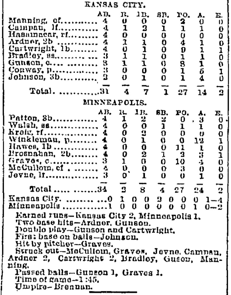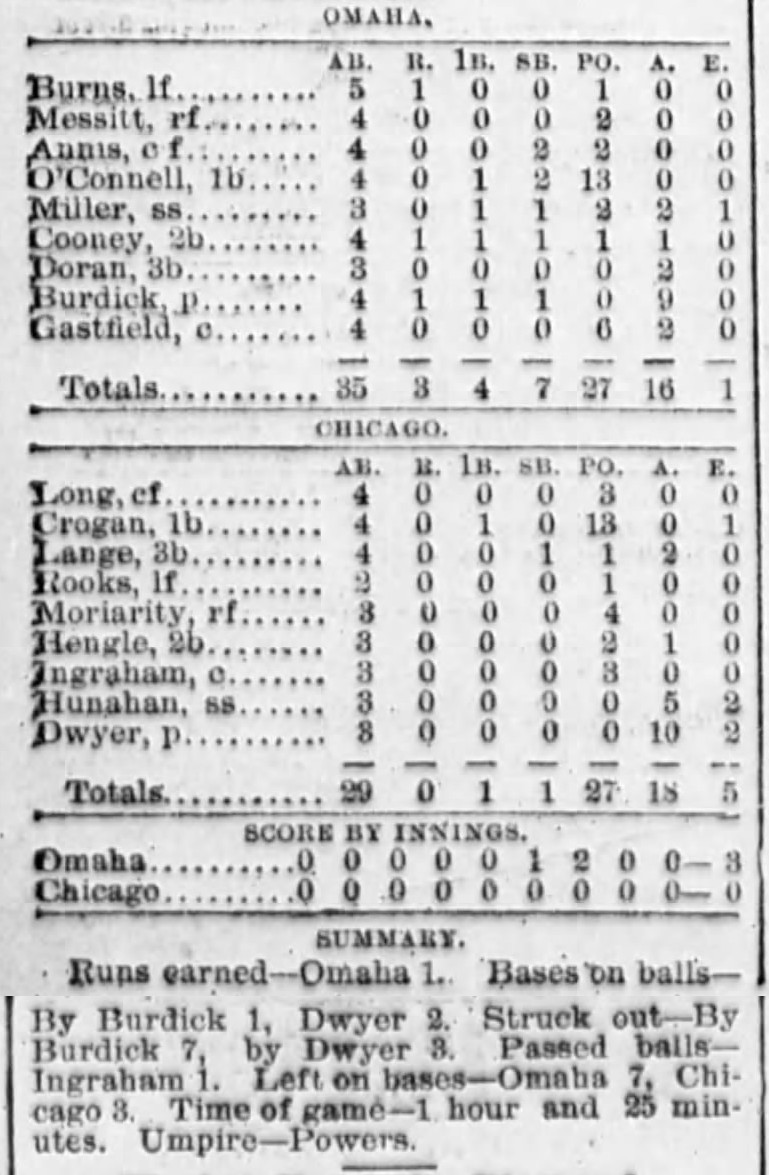 | Game 26: Milwaukee @ Des Moines Des Moines 3, Milwaukee 2 Des Moines Register ![]() | Game 27: Minneapolis @ Kansas City Kansas City 4, Minneapolis 2 Kansas City Times ![]() | Game 28: Chicago @ Omaha Omaha 3, Chicago 0 Omaha Daily Bee ![]() | Game 29: St. Paul @ St. Louis St. Paul 9, St. Louis 8 St. Louis Republican ![]() |