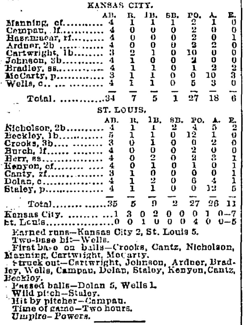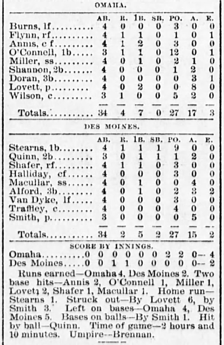 | Game 31: St. Louis @ Kansas City Kansas City 7, St. Louis 5 Kansas City Times ![]() | Game 32: Des Moines @ Omaha Omaha 4, Des Moines 2 Omaha Daily Bee ![]() |