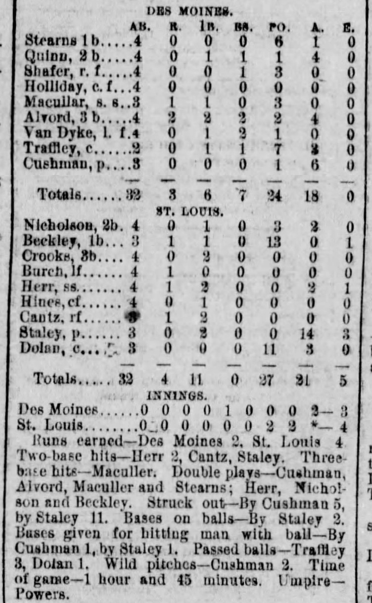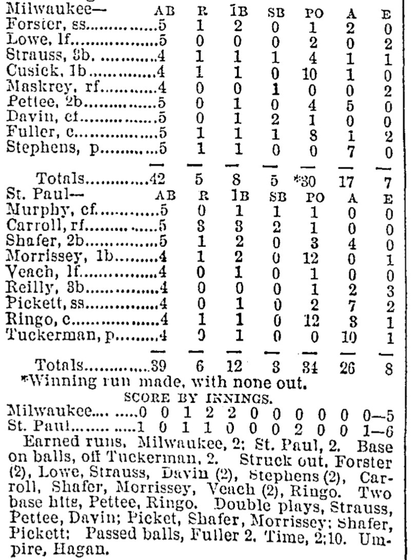 | Game 93: Minneapolis @ Chicago Minneapolis 4, Chicago 1 Chicago Tribune ![]() | Game 94: St. Louis @ Des Moines St. Louis 4, Des Moines 3 Des Moines Register ![]() | Game 95: St. Paul @ Milwaukee St. Paul 6, Milwaukee 5 Milwaukee Sentinel ![]() | Game 96: Kansas City @ Omaha Kansas City 16, Omaha 6 Omaha Daily Bee ![]() |