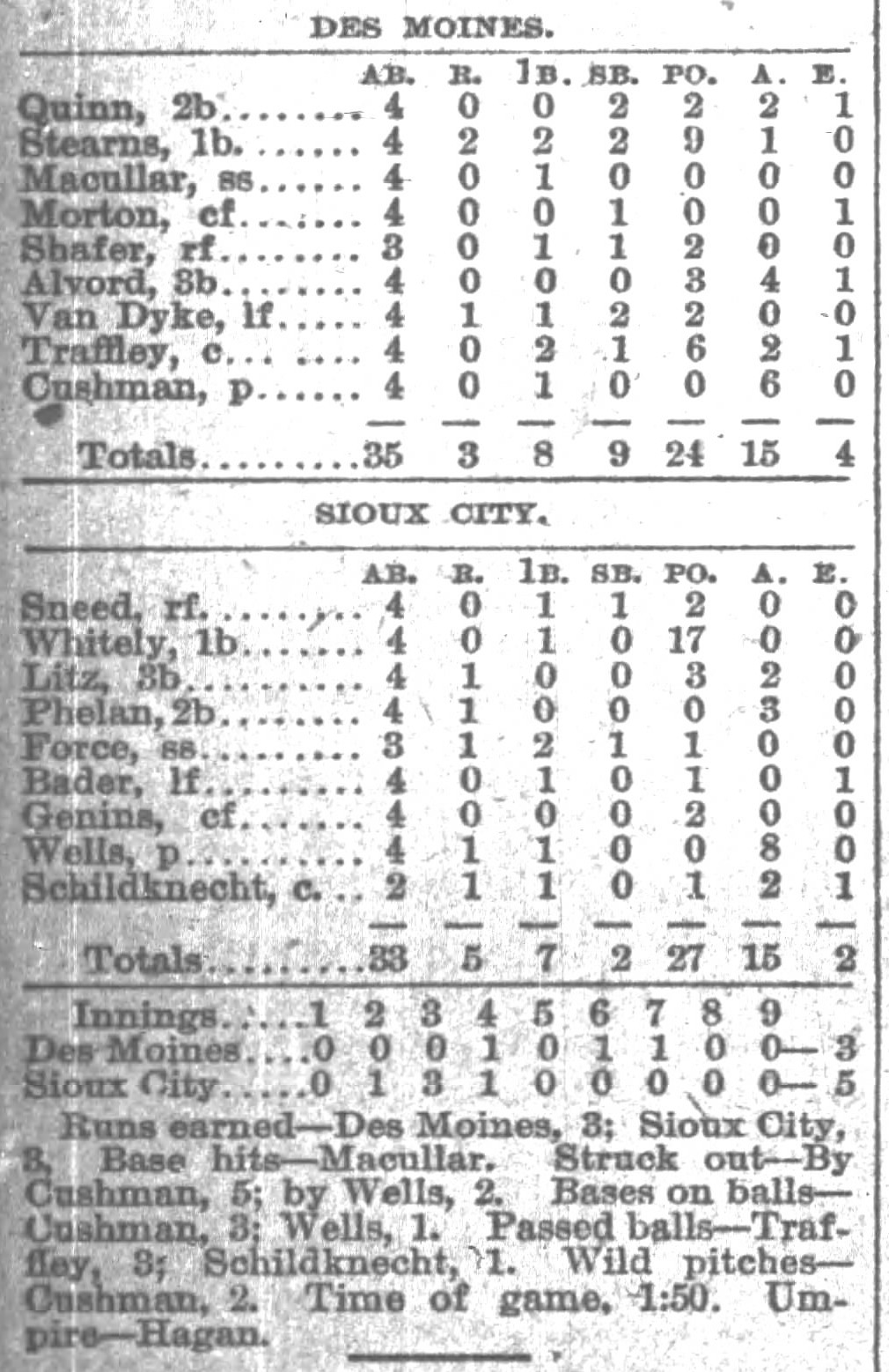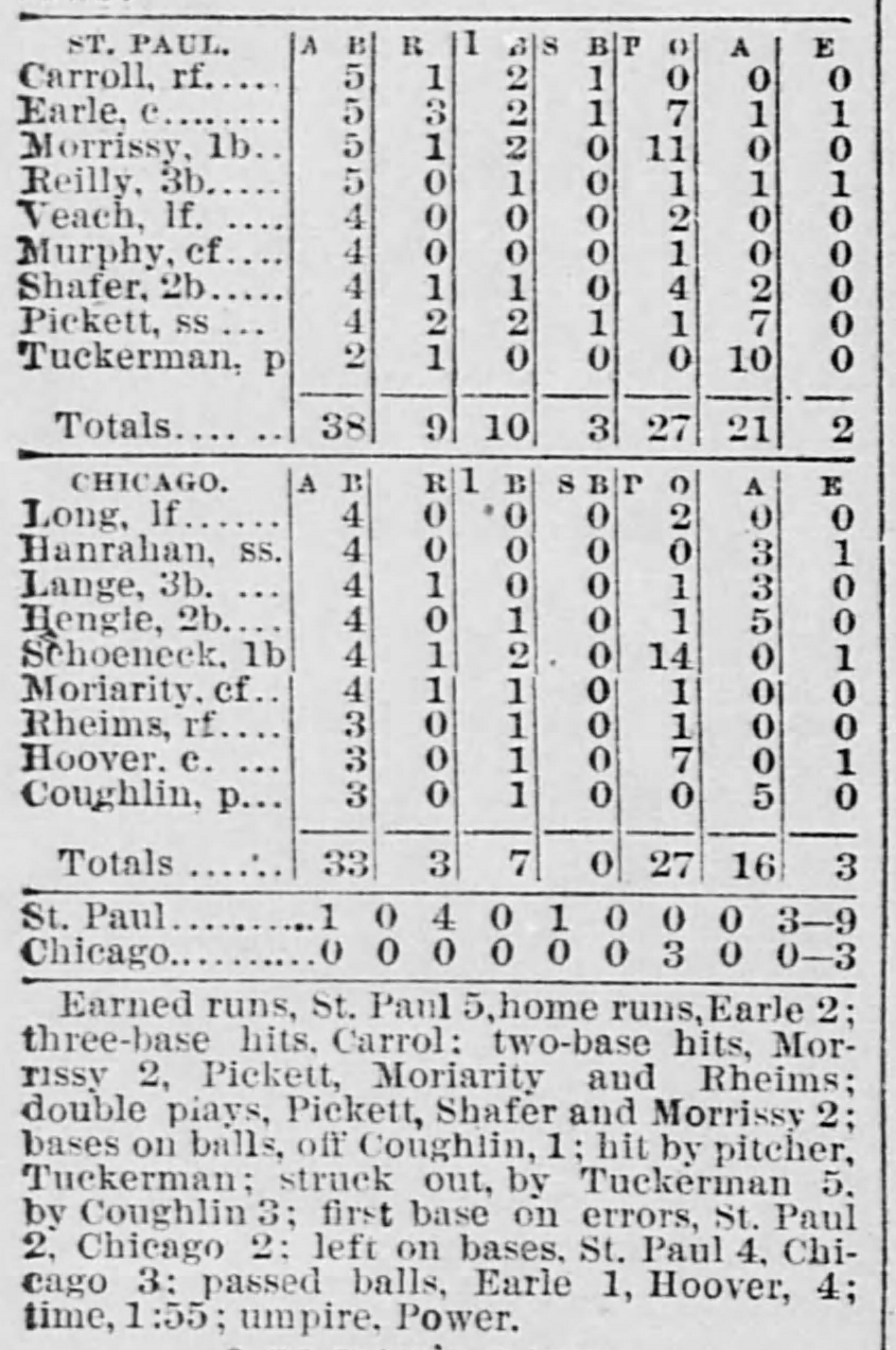 | Game 183: Chicago @ St. Paul St. Paul 9, Chicago 3 St. Paul Globe ![]() | Game 184: Sioux City @ Des Moines Sioux City 5, Des Moines 3 Sioux City Journal ![]() |