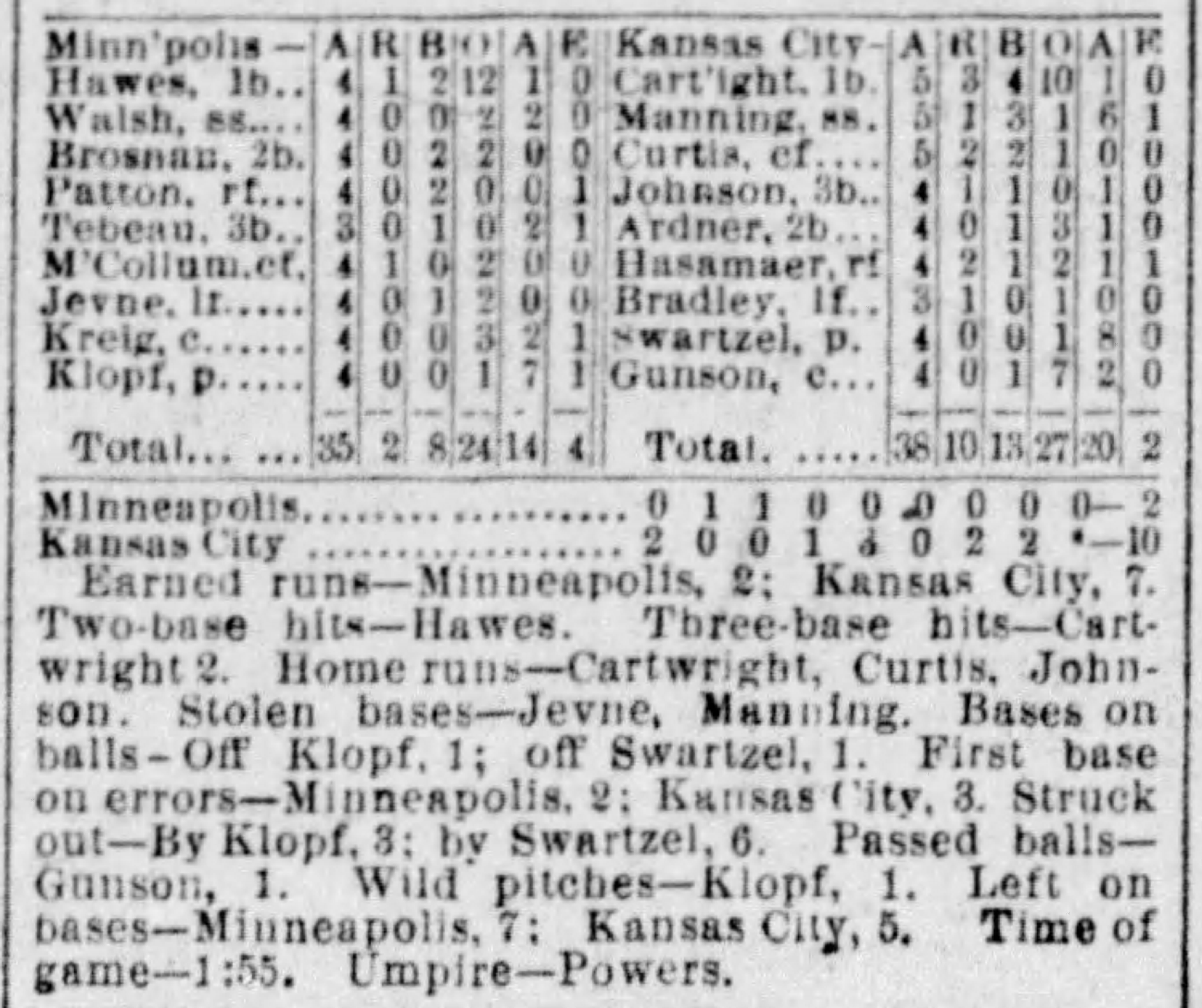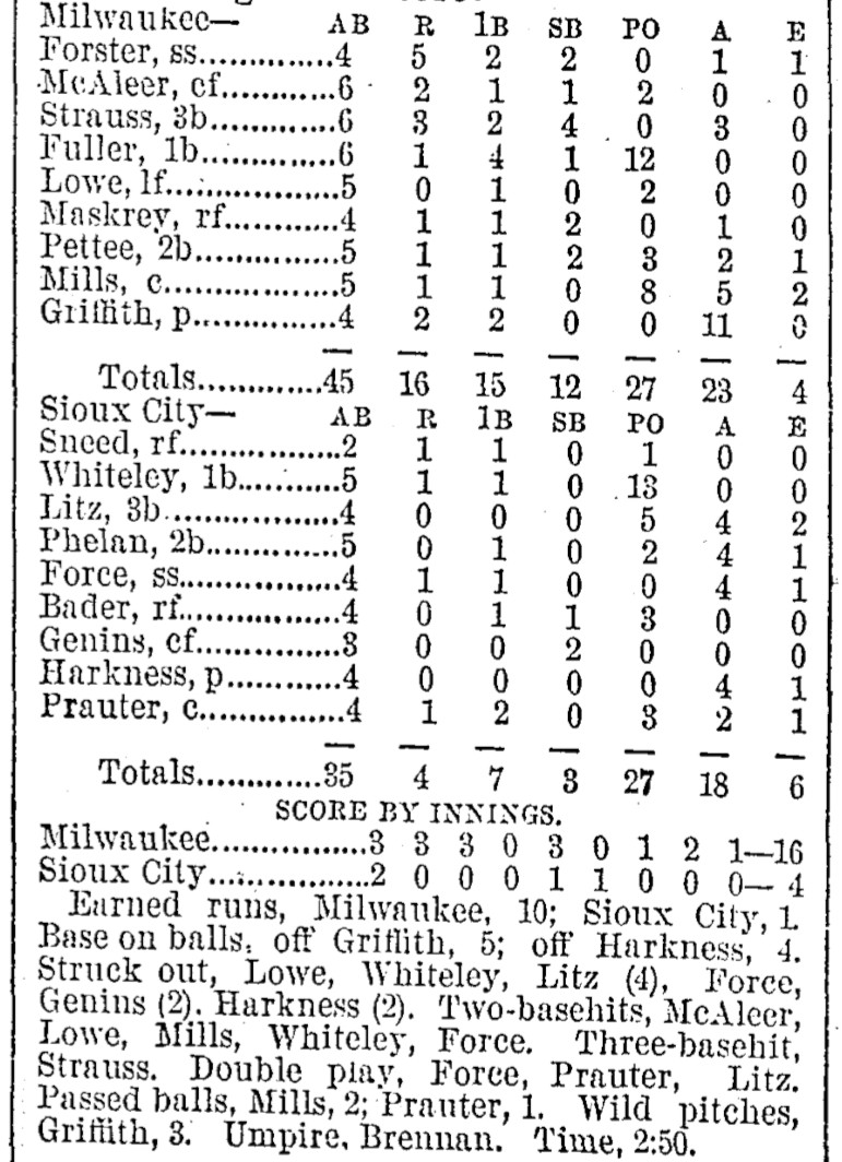 | Game 192: Sioux City @ Milwaukee Milwaukee 16, Sioux City 4 Milwaukee Sentinel ![]() | Game 193: Kansas City @ Minneapolis Kansas City 10, Minneapolis 2 Minneapolis Star Tribune ![]() | Game 194: Des Moines @ St. Paul Des Moines 4, St. Paul 0 St. Paul Globe ![]() |