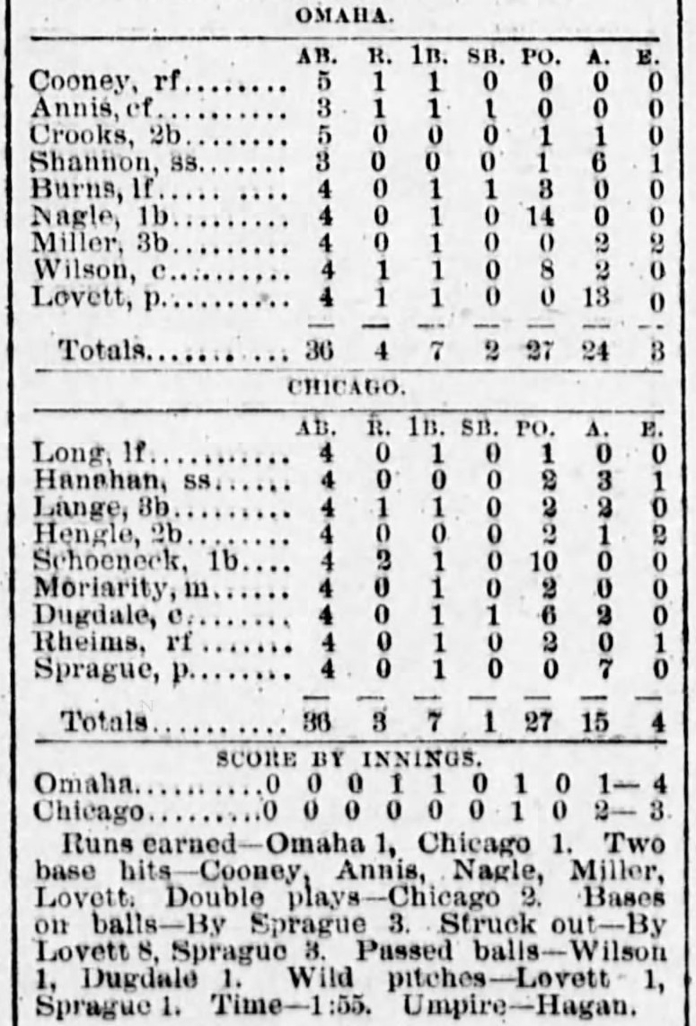 | Game 195: Sioux City @ Milwaukee Sioux City 4, Milwaukee 0 Milwaukee Sentinel ![]() | Game 196: Chicago @ Omaha Omaha 4, Chicago 3 Omaha Daily Bee ![]() |