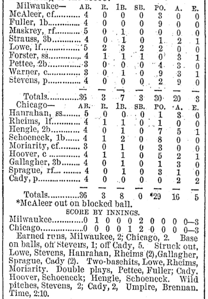 | Game 216: Chicago @ Milwaukee Milwaukee 3, Chicago 3 Milwaukee Sentinel ![]() Called after 10 innings |
