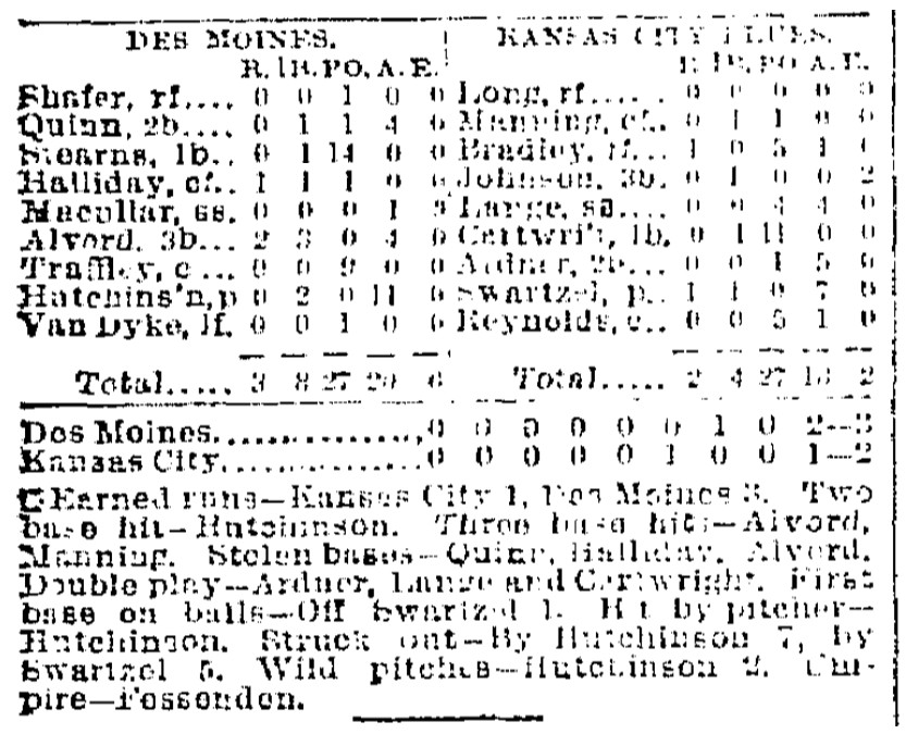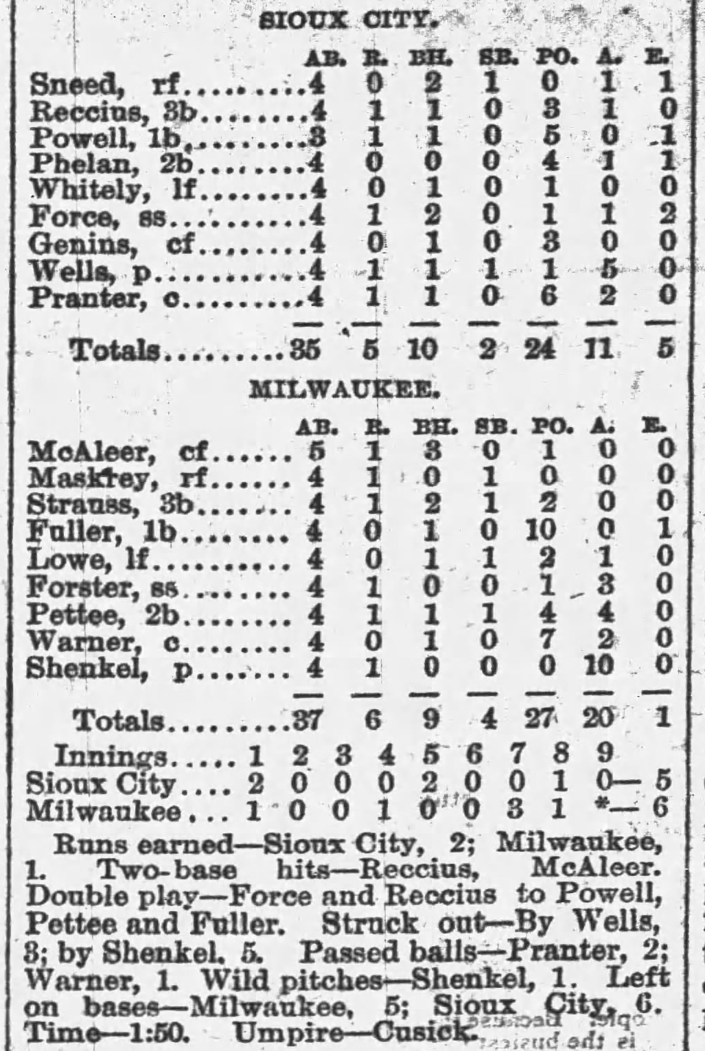 | Game 241: Chicago @ Omaha Omaha 6, Chicago 5 Omaha Daily Bee ![]() | Game 242: Milwaukee @ Sioux City Milwaukee 6, Sioux City 5 Sioux City Journal ![]() | Game 243: Kansas City @ Des Moines Des Moines 3, Kansas City 2 Kansas City Times ![]() |