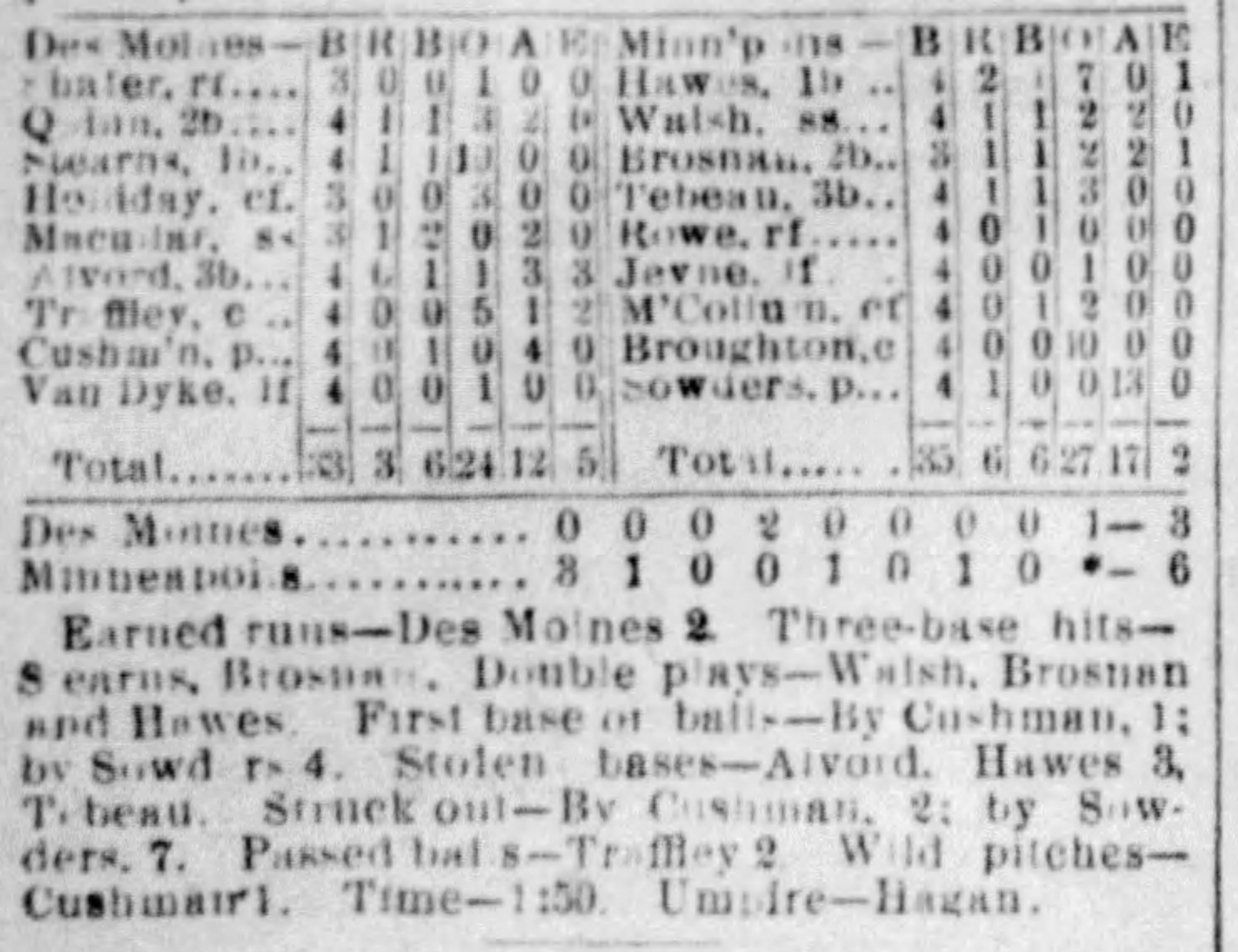 | Game 244: Chicago @ Omaha Omaha 5, Chicago 3 Omaha Daily Bee ![]() | Game 245: Minneapolis @ Des Moines Minneapolis 6, Des Moines 3 Minneapolis Star Tribune ![]() | Game 246: Milwaukee @ Sioux City Milwaukee 5, Sioux City 4 Sioux City Journal ![]() |