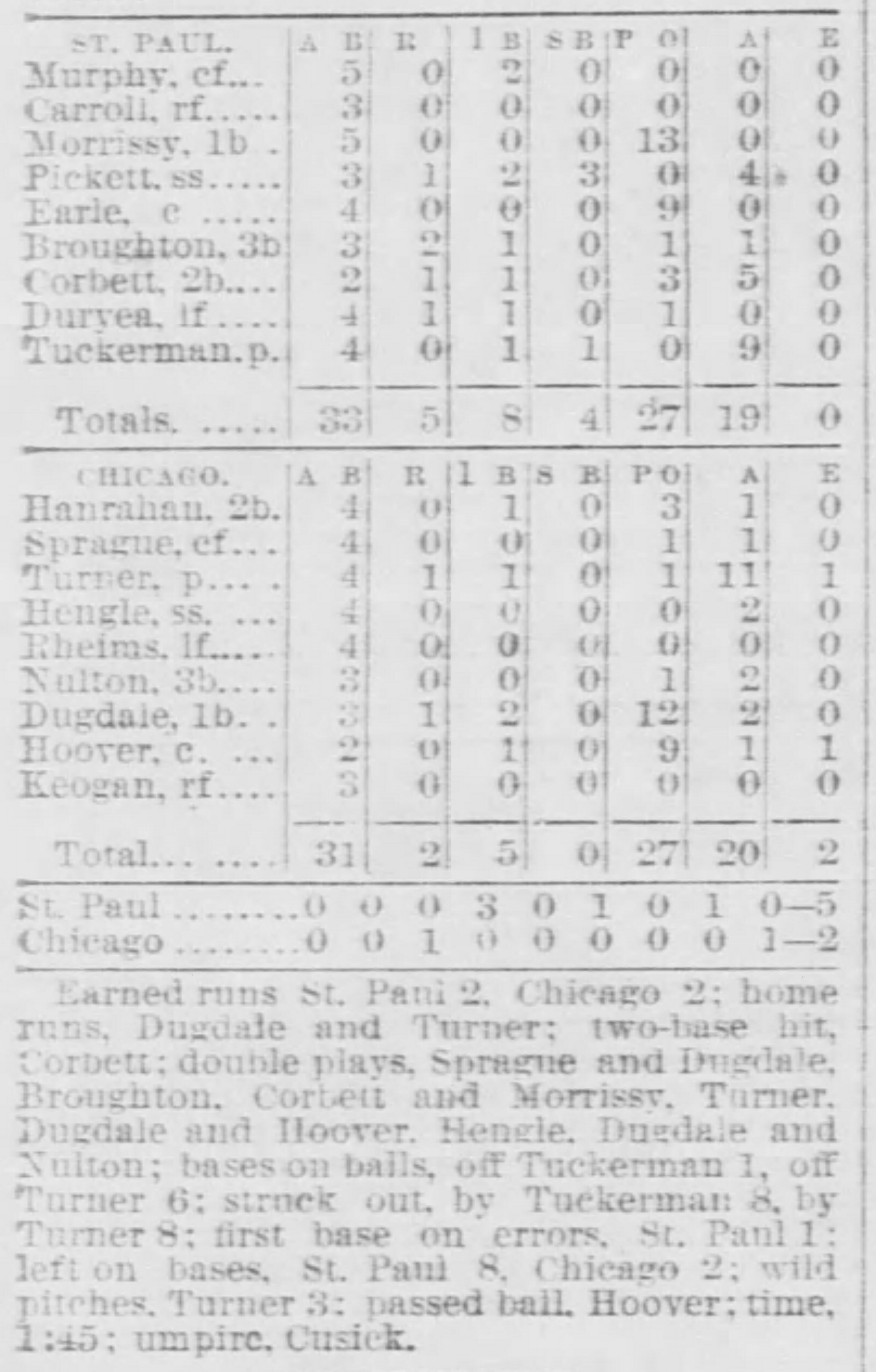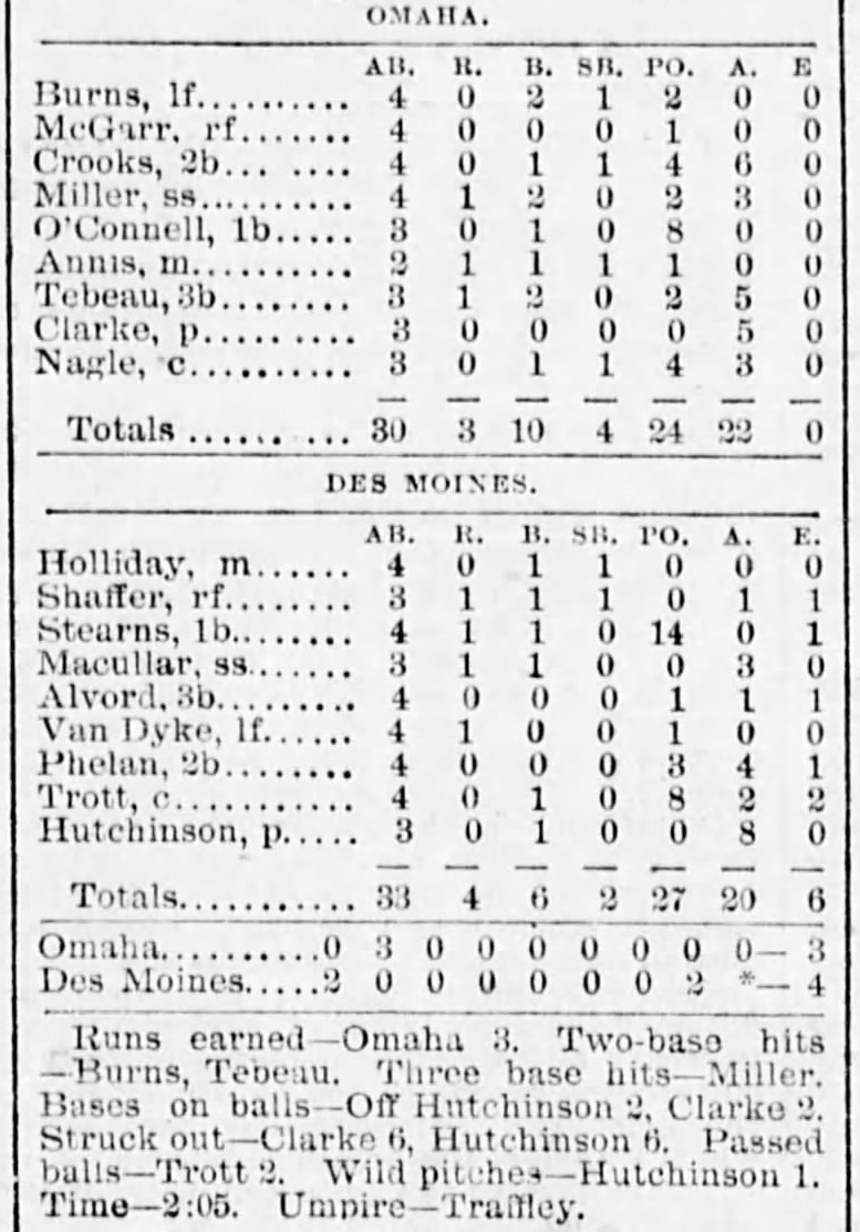 | Game 421: Chicago @ St. Paul St. Paul 5, Chicago 2 St. Paul Globe ![]() | Game 422: Des Moines @ Omaha Des Moines 4, Omaha 3 Omaha Daily Bee ![]() |