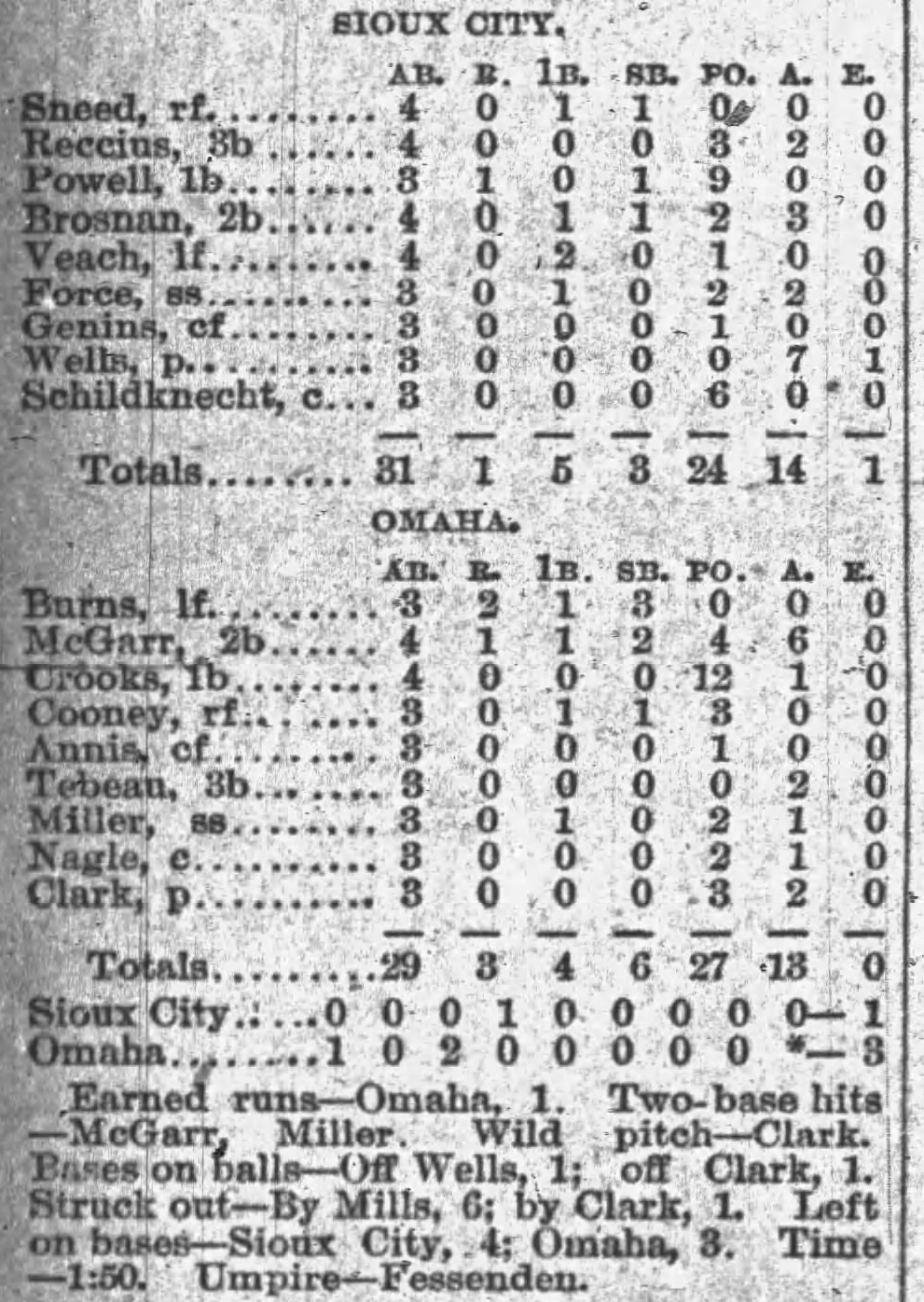 | Game 428: St. Paul @ Milwaukee Milwaukee 1, St. Paul 0 Milwaukee Sentinel ![]() | Game 429: St. Paul @ Milwaukee St. Paul 4, Milwaukee 1 Milwaukee Sentinel ![]() | Game 430: Omaha @ Sioux City Omaha 3, Sioux City 1 Sioux City Journal ![]() Game 1 | Game 431: Omaha @ Sioux City Omaha 5, Sioux City 1 Sioux City Journal ![]() Game 2 |