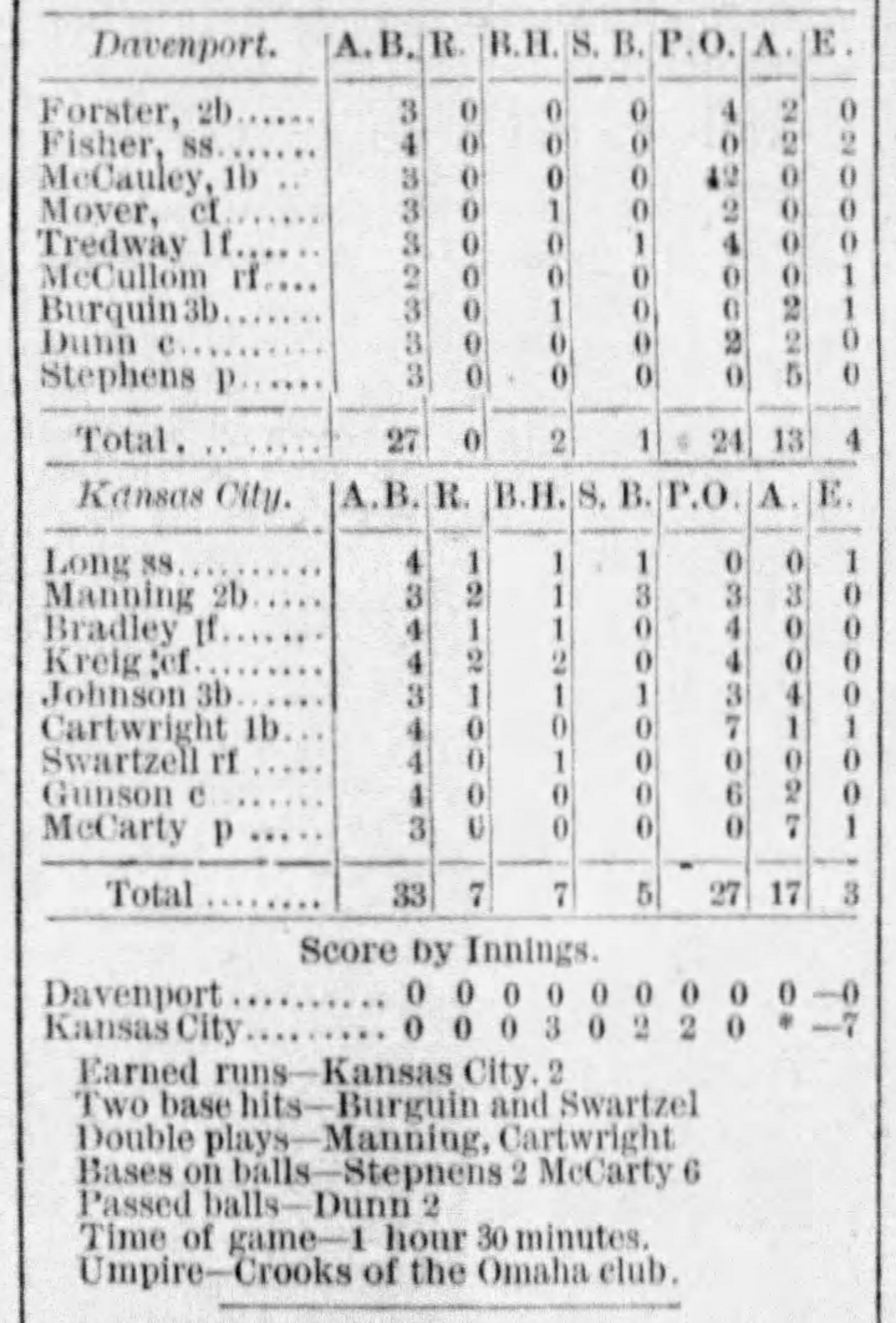 | Game 447: Des Moines @ Sioux City Des Moines 15, Sioux City 1 Sioux City Journal ![]() | Game 448: Kansas City @ Davenport Kansas City 7, Davenport 0 Quad City Times ![]() |