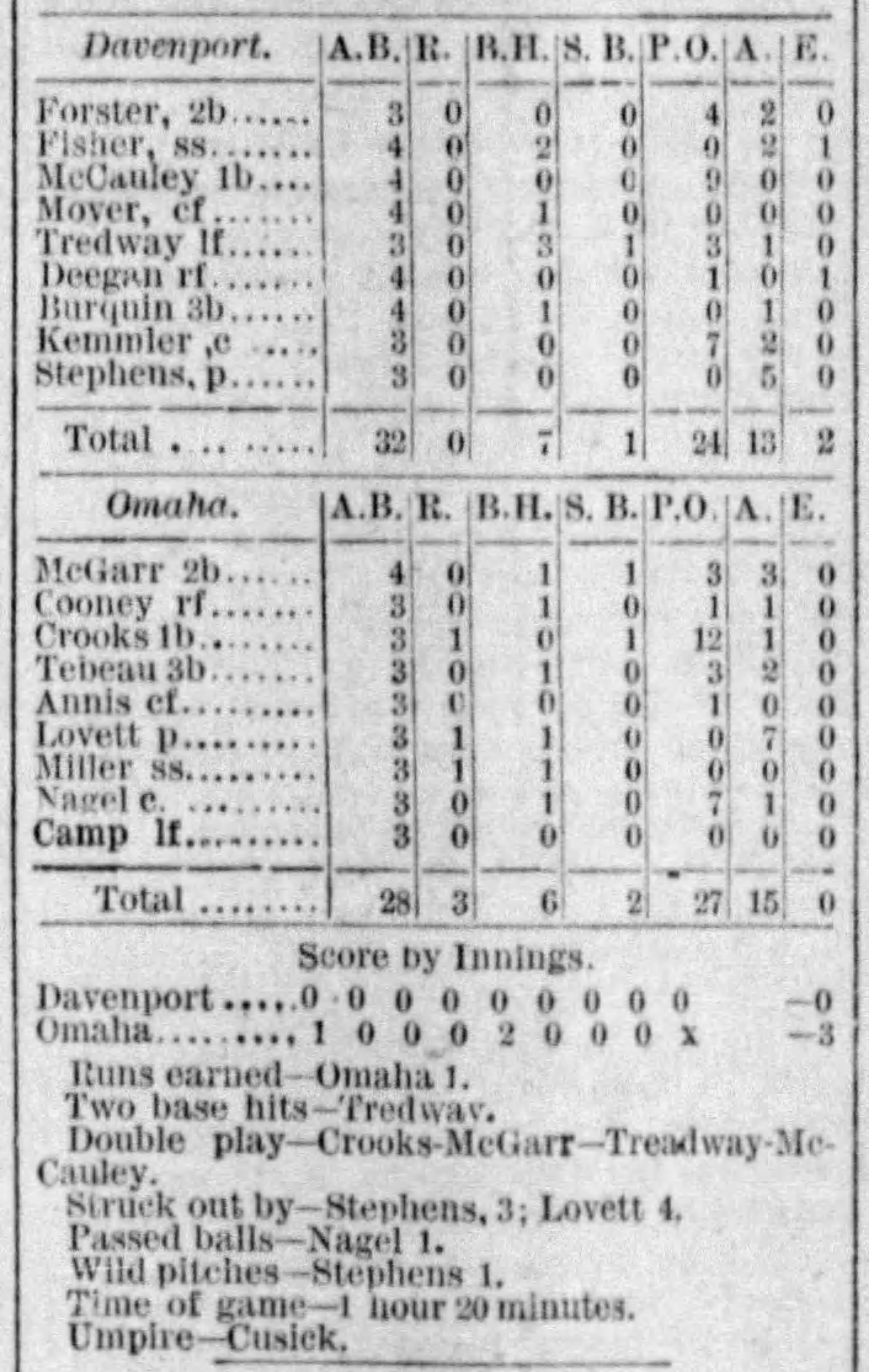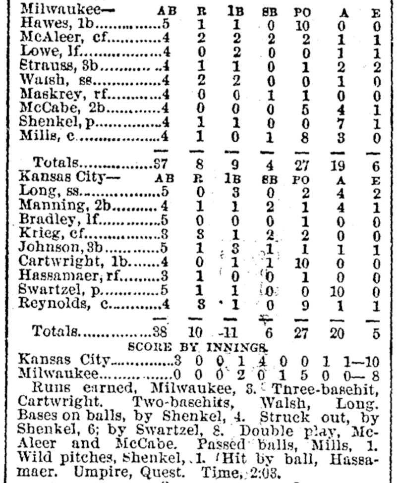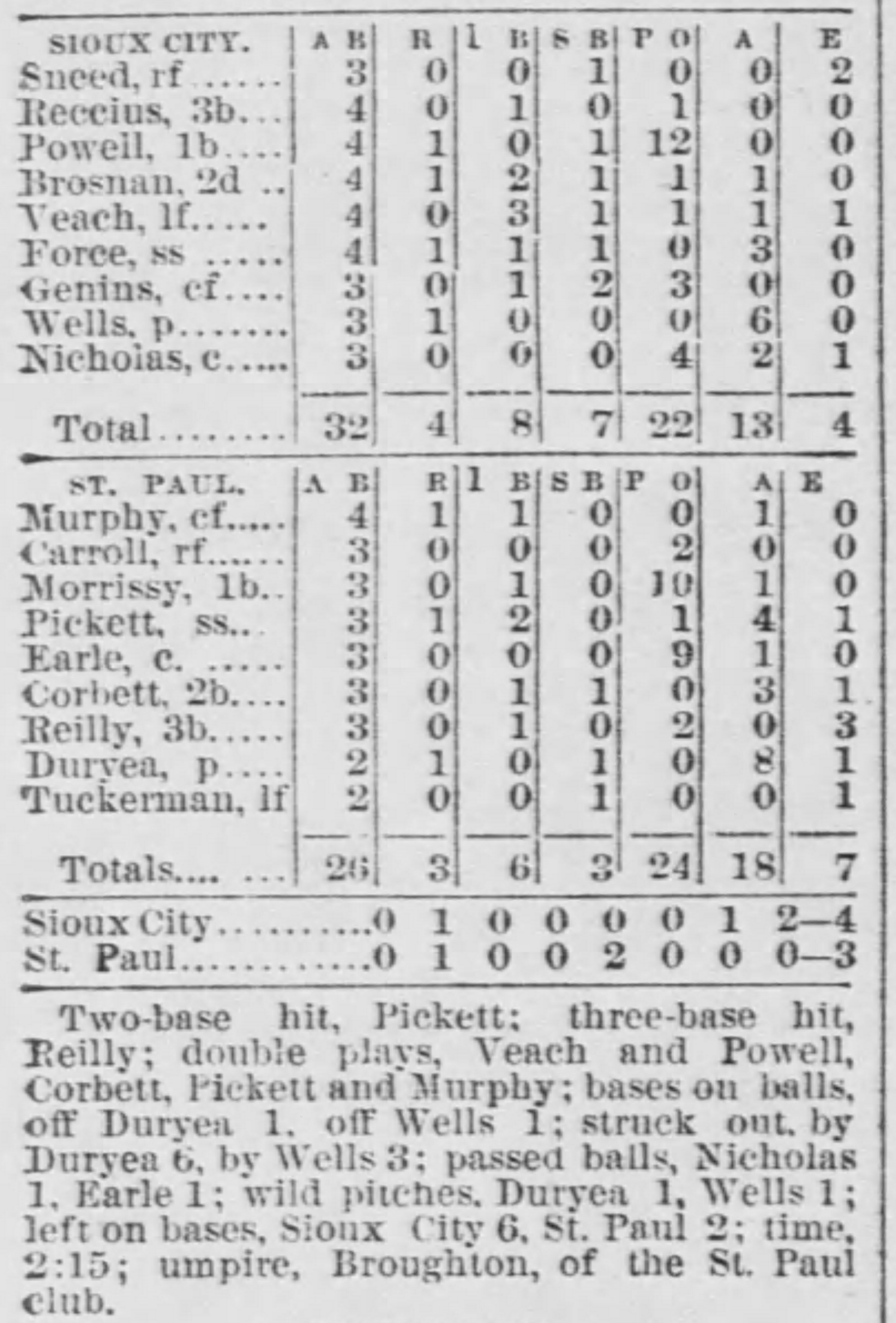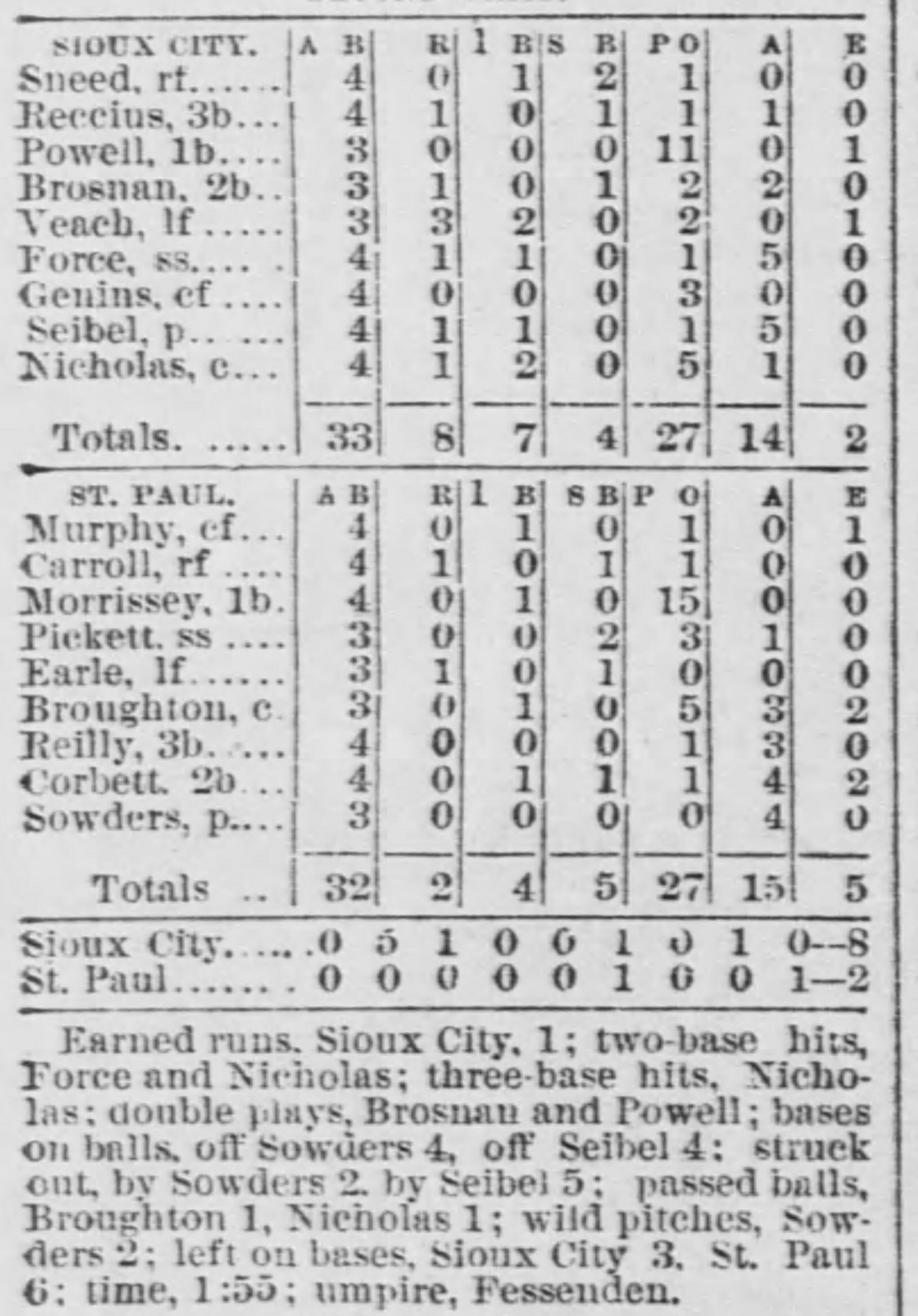 | Game 456: Kansas City @ Milwaukee Kansas City 10, Milwaukee 8 Milwaukee Sentinel ![]() | Game 457: Omaha @ Davenport Omaha 3, Davenport 0 Quad City Times ![]() | Game 458: St. Paul @ Sioux City Sioux City 4, St. Paul 3 St. Paul Globe ![]() Game 1 | Game 459: St. Paul @ Sioux City Sioux City 8, St. Paul 2 St. Paul Globe ![]() Game 2 |