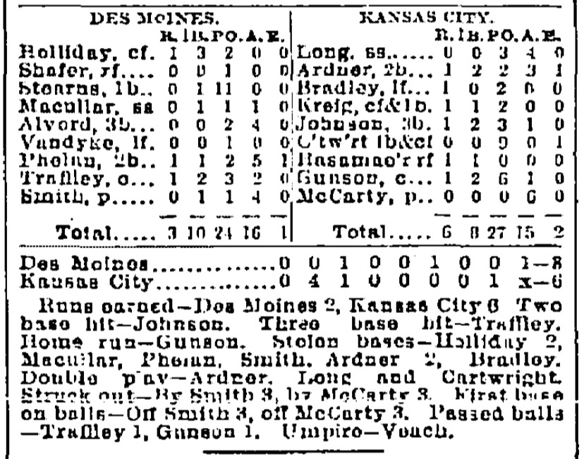 | Game 476: Kansas City @ Des Moines Kansas City 6, Des Moines 3 Kansas City Times ![]() |