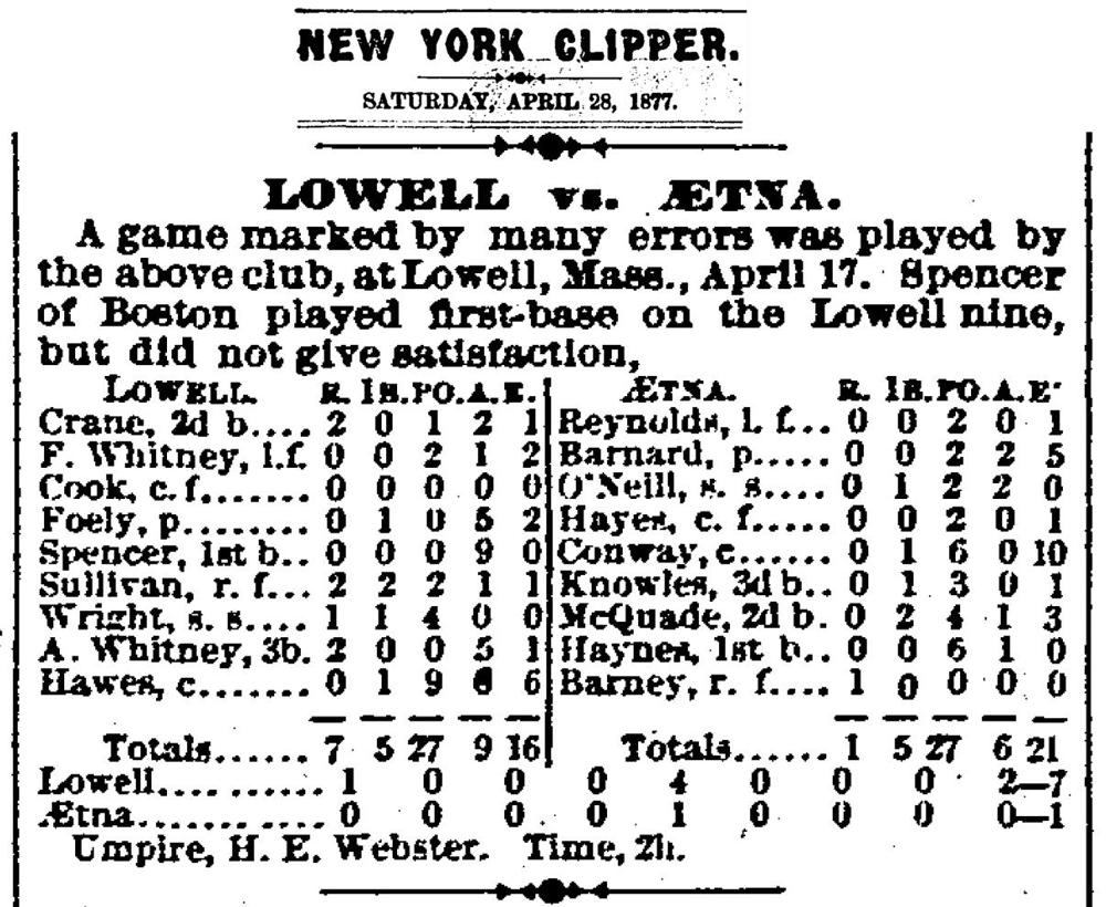 Lowell 7, Aetna 1