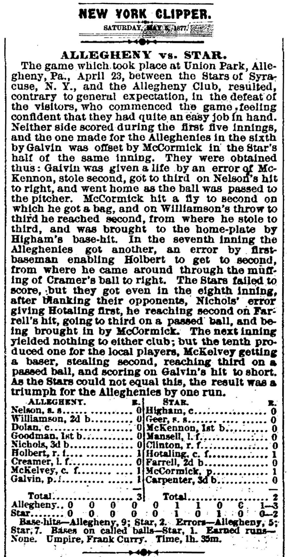 April 23, 1877 at Pittsburgh