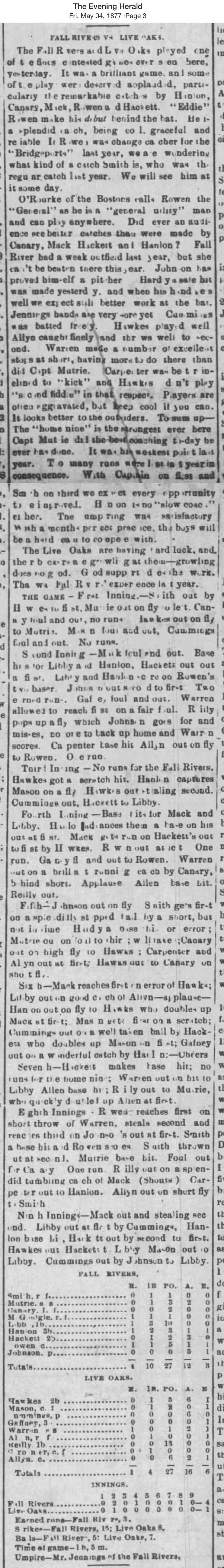 May 3, 1877 at Fall RiverFall River 4, Live Oak 1GameID g05031877-02