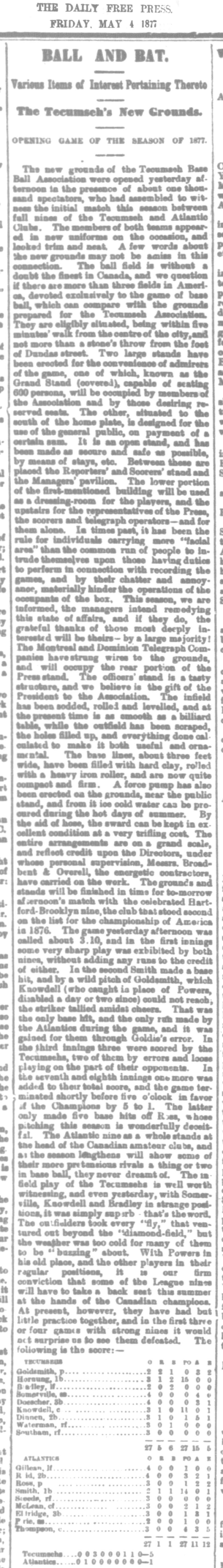 May 3, 1877 at LondonTecumseh 5, Atlantics 1GameID g05031877-04