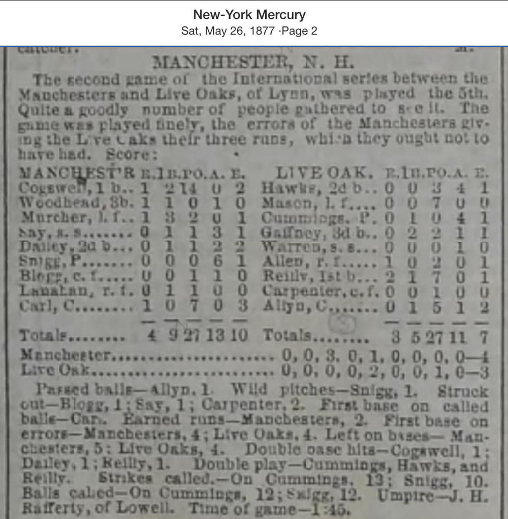 May 5, 1877 at ManchesterManchester 4, Live Oak 3GameID g05051877-02