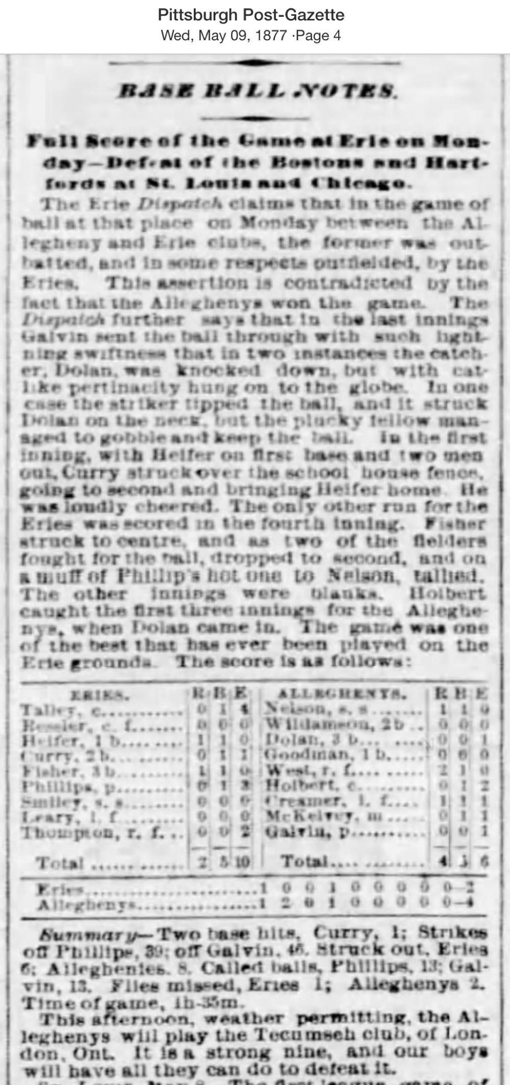 May 7, 1877 at ErieErie 2, Allegheny 4GameID g05071877-01