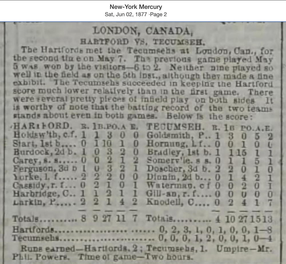 May 7, 1877 at LondonTecumseh 8, Hartford 4GameID g05071877-04