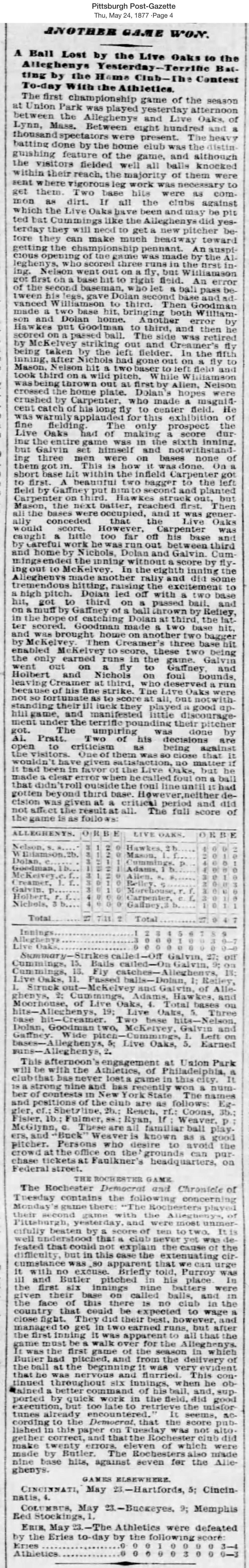 May 23, 1877 at AlleghenyAllegheny 7, Live Oak 0GameID g05231877-01