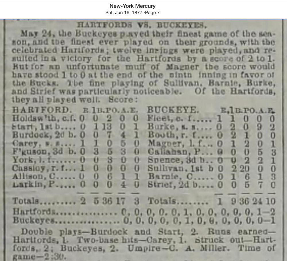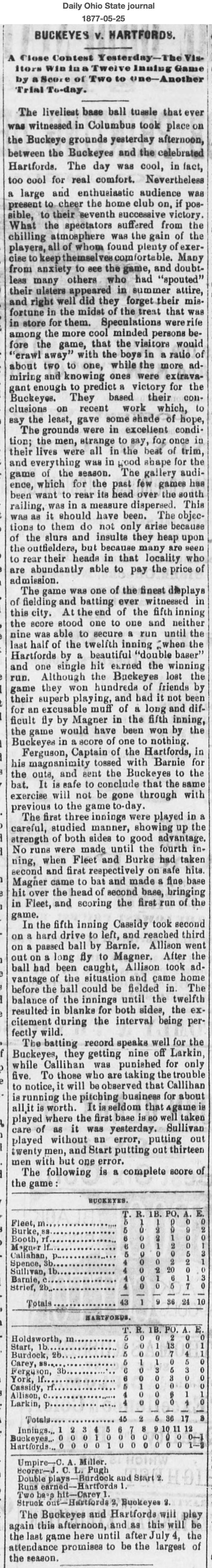 May 24, 1877 at ColumbusBuckeyes 1, Hartford 2GameID g05241877-02