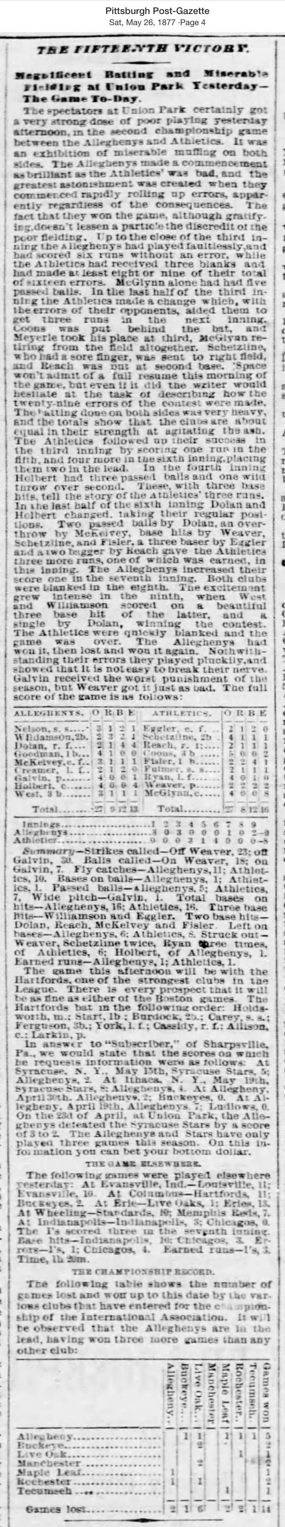 May 25, 1877 at Allegheny