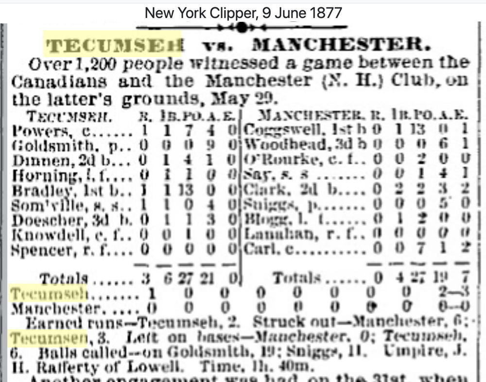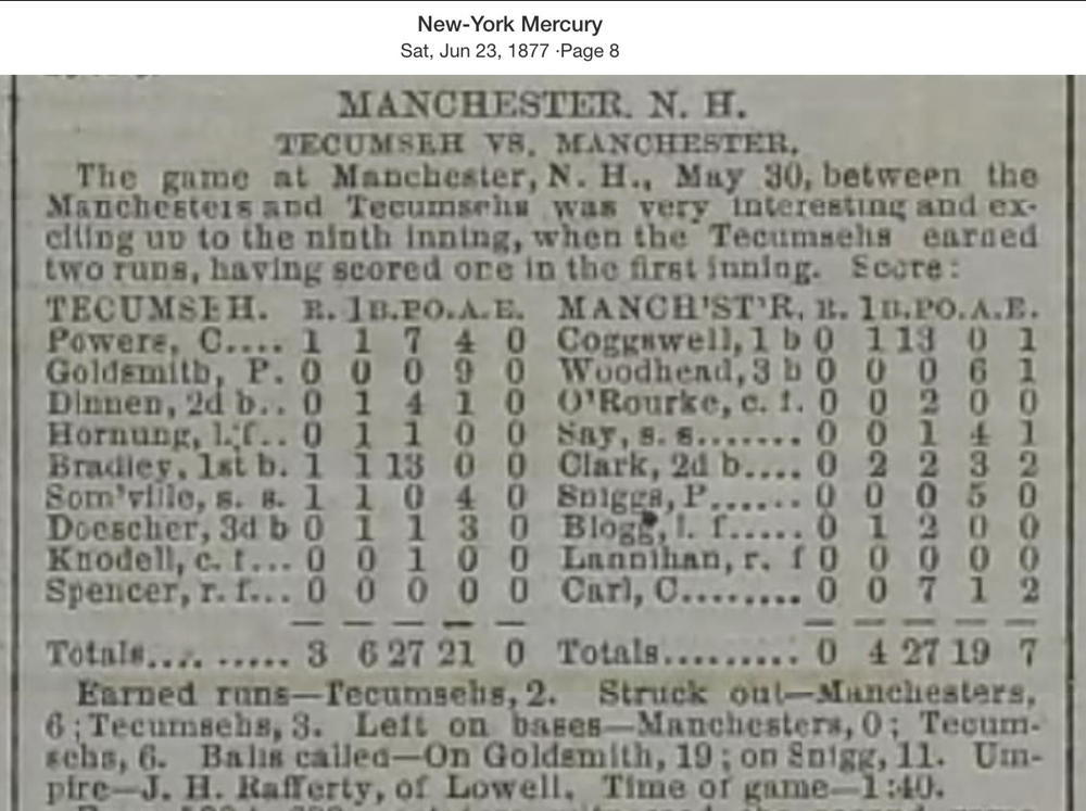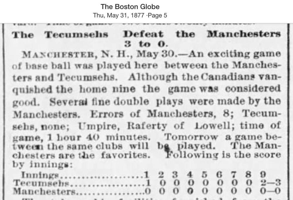 May 30, 1877 at ManchesterManchester 0, Tecumseh 3GameID g05301877-06